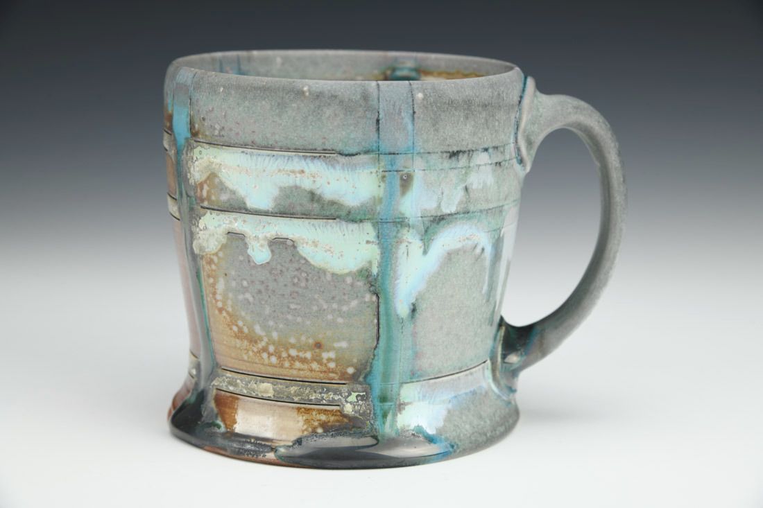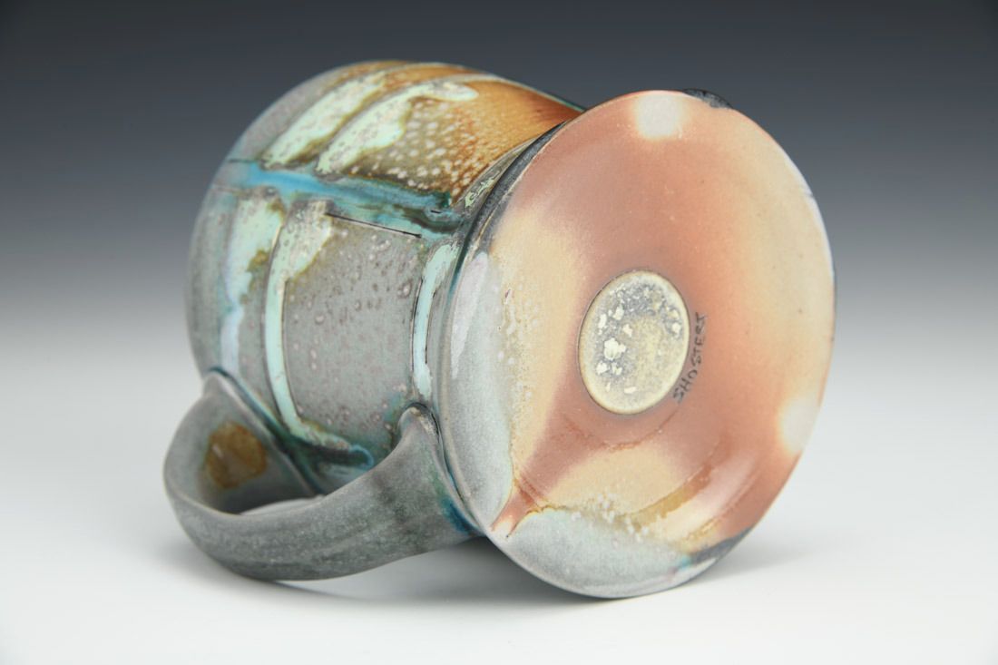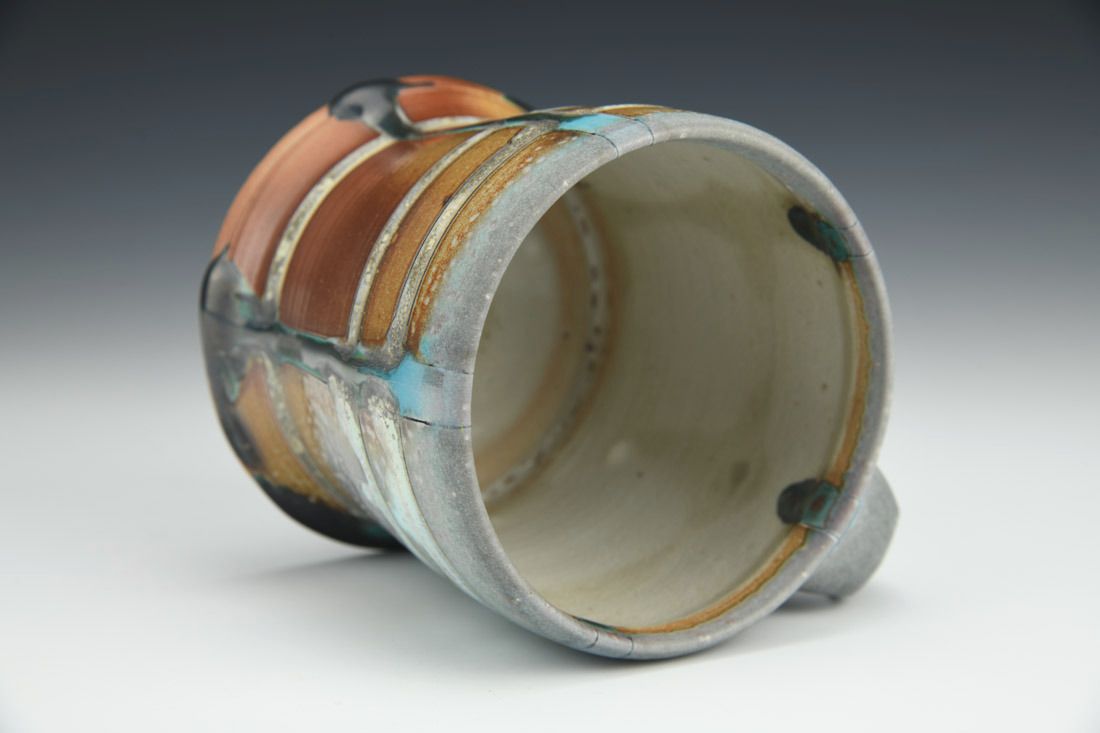 B-Mix, wheel thrown, hand carved, inlaid underglaze, terra sigillata, glaze, cone 10 soda fired, 4 x 5 x 3.75 inches.