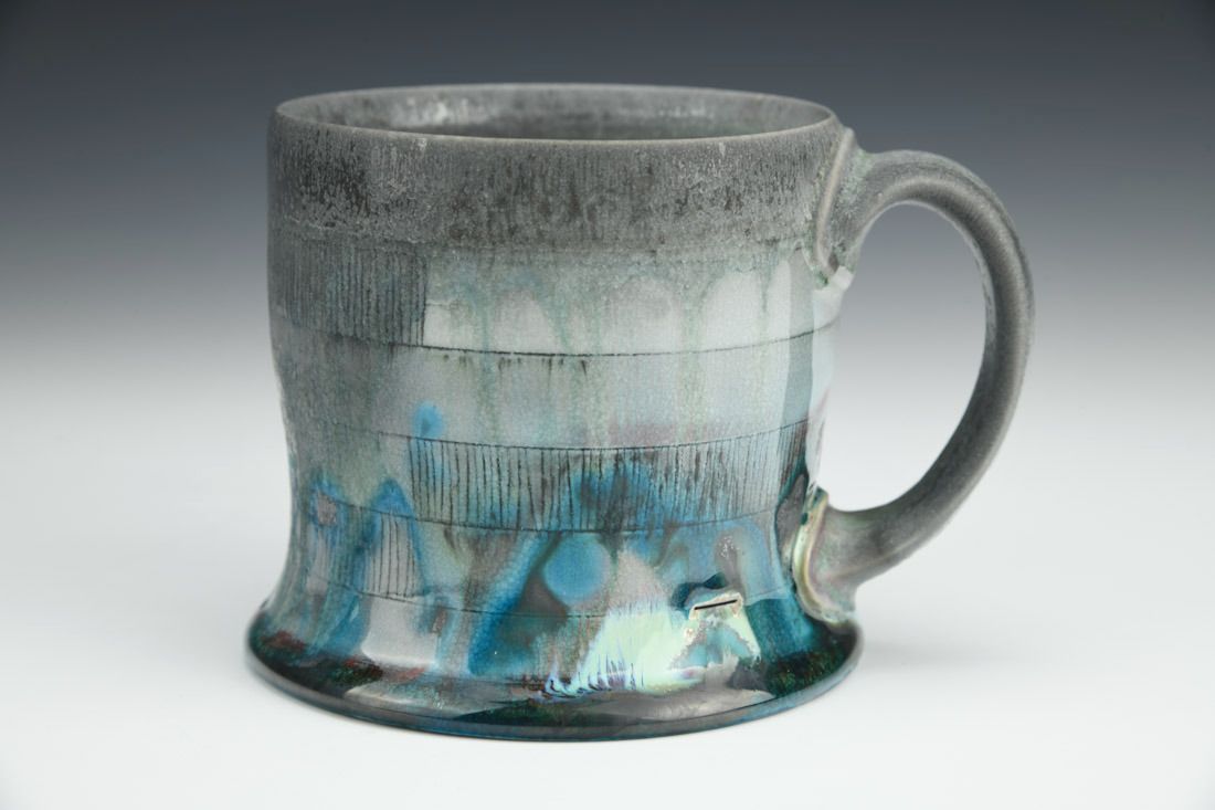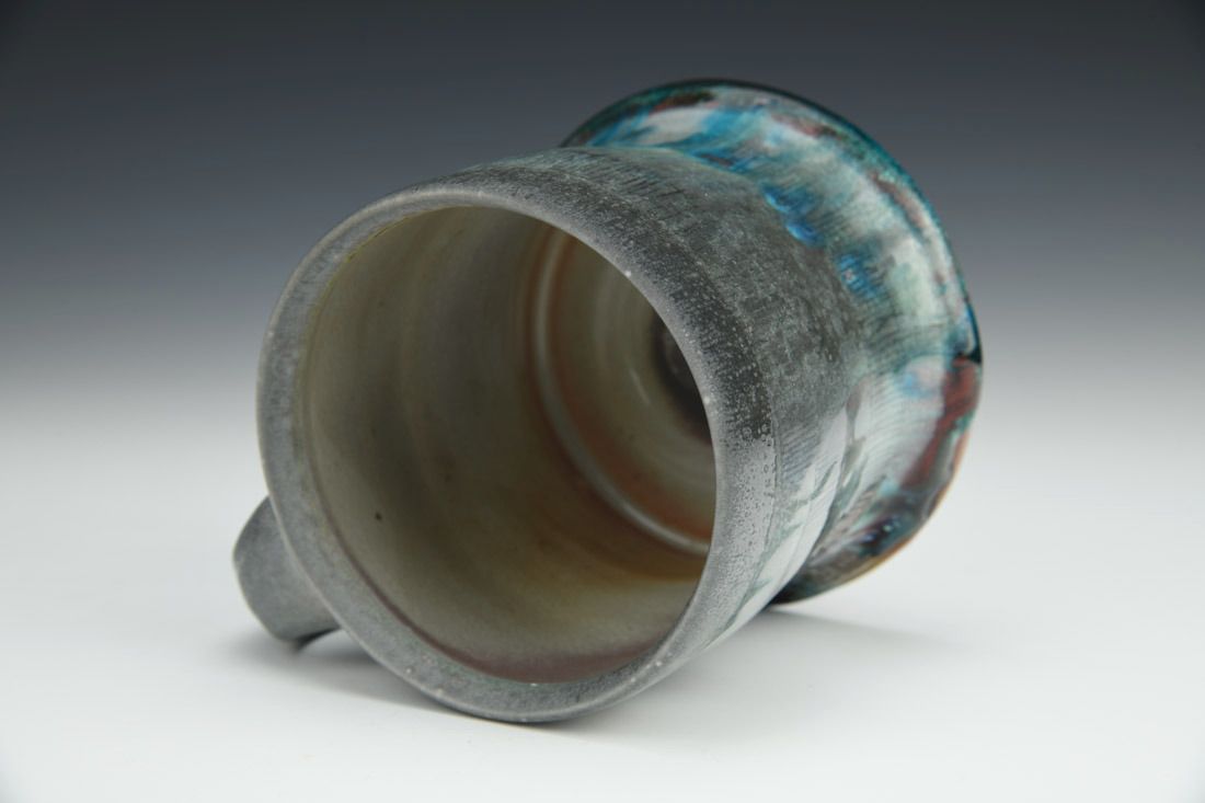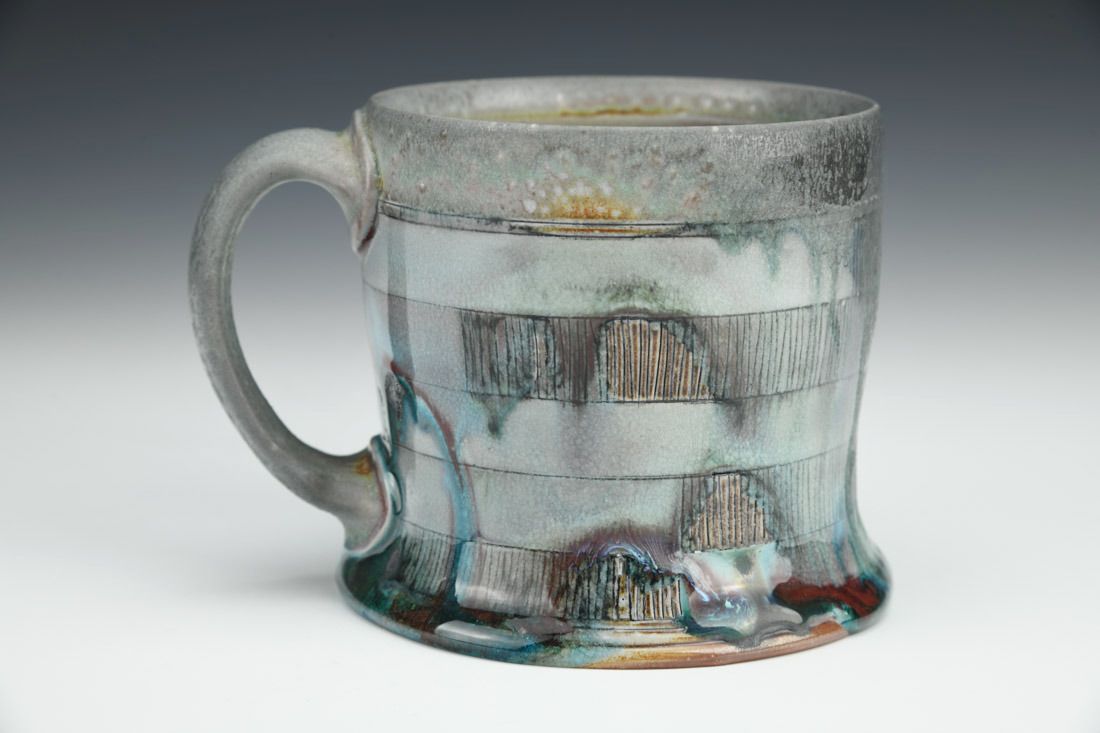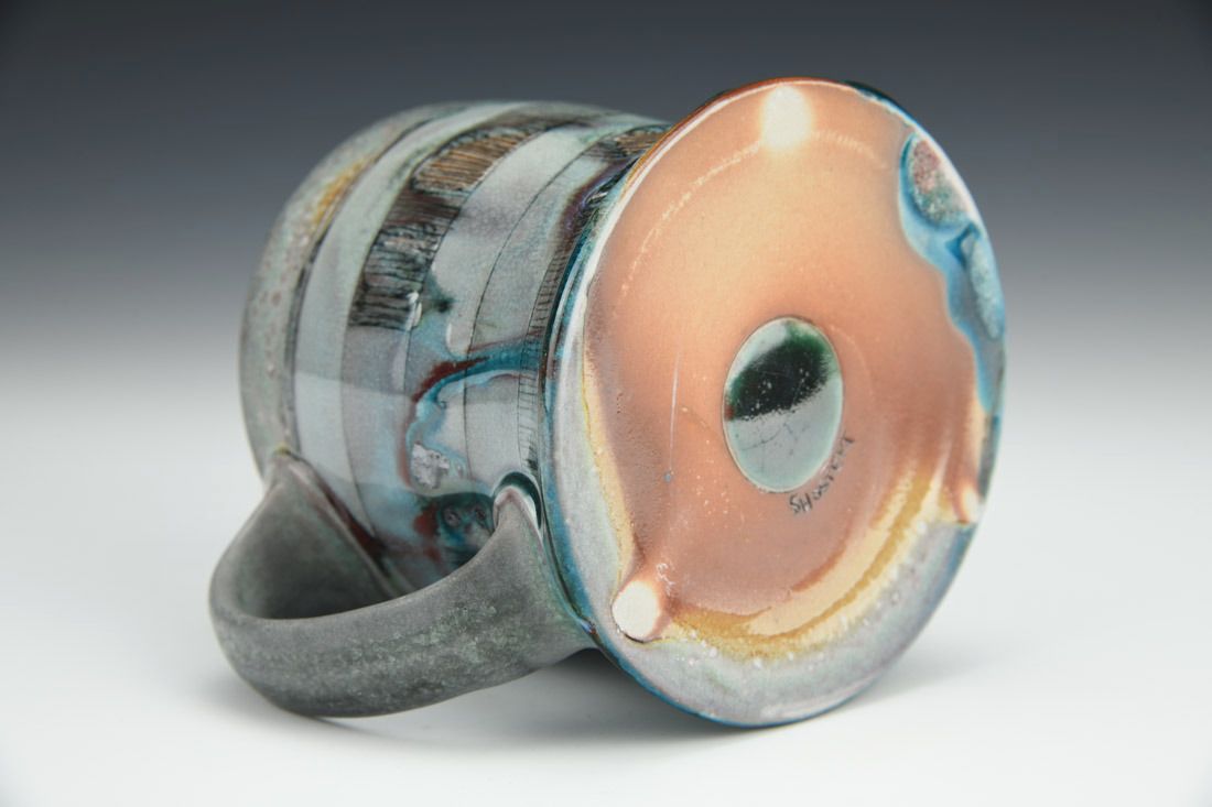 Porcelain, wheel thrown, hand carved, inlaid underglaze, terra sigillata, glaze, cone 10 soda fired, 3.5 x 5 x 4 inches.