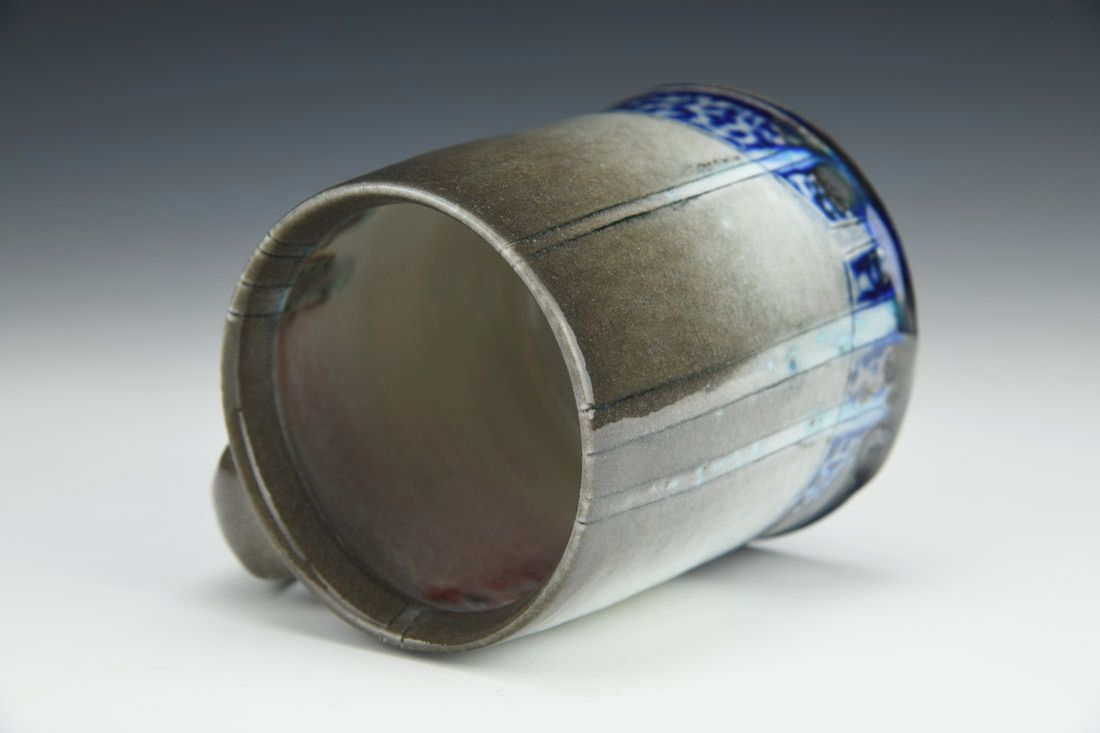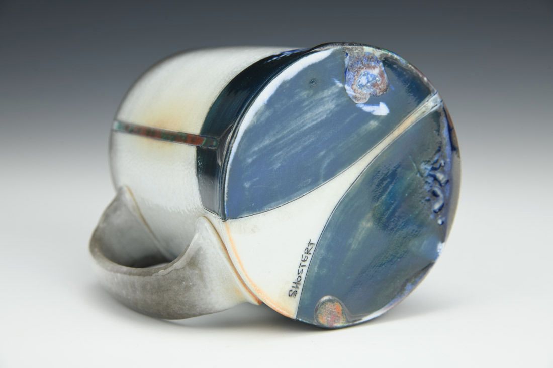 Porcelain, wheel thrown, hand carved, inlaid underglaze, terra sigillata, glaze, cone 10 soda fired, 4 x 4.5 x 3.5 inches.
