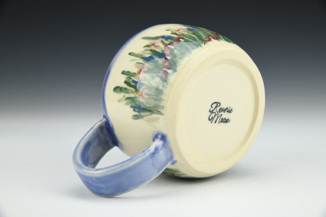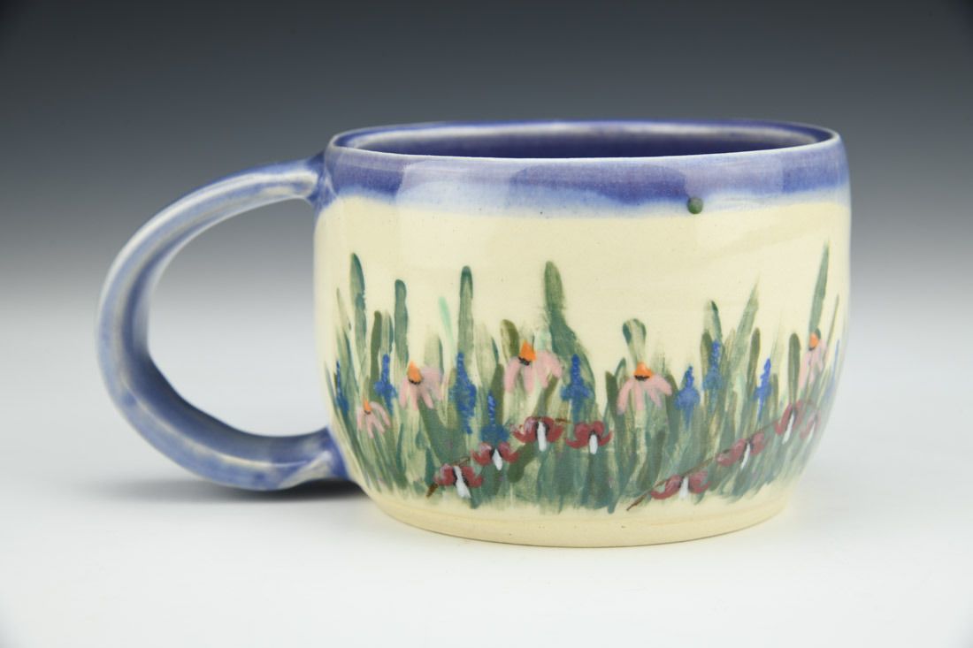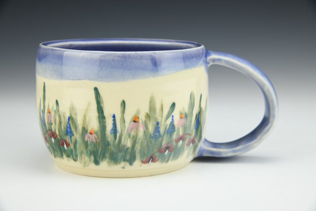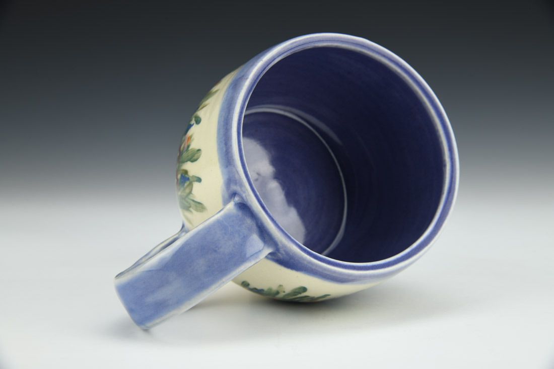 B-MIX 5, wheel thrown, handpainted, amaco underglaze, cone 6 electric fired, 2.75 x 5.75 x 4 inches.