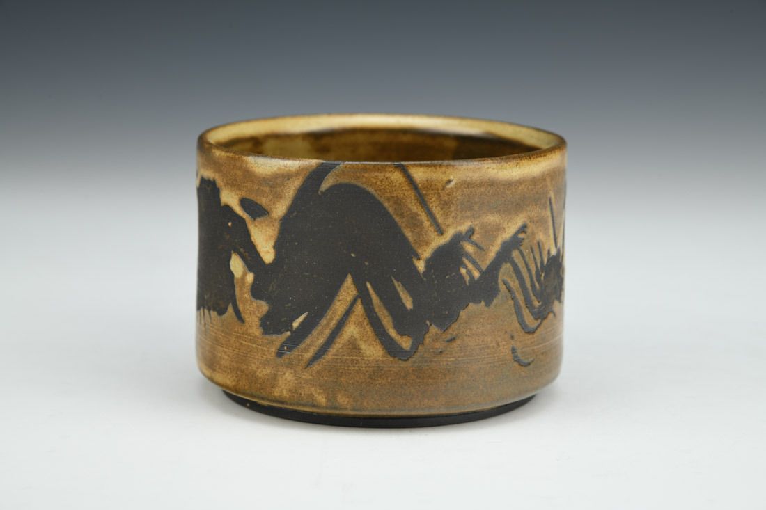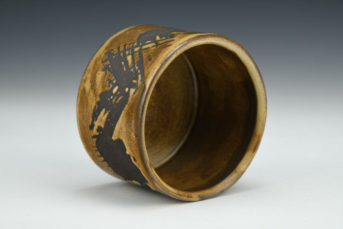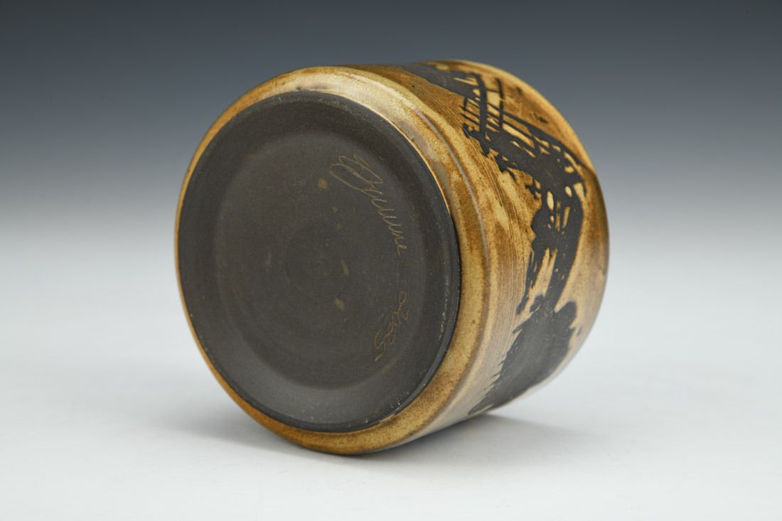 Stoneware, wheel thrown, cone 6 fired, 2.25 x 3.25 x 3.25 inches.