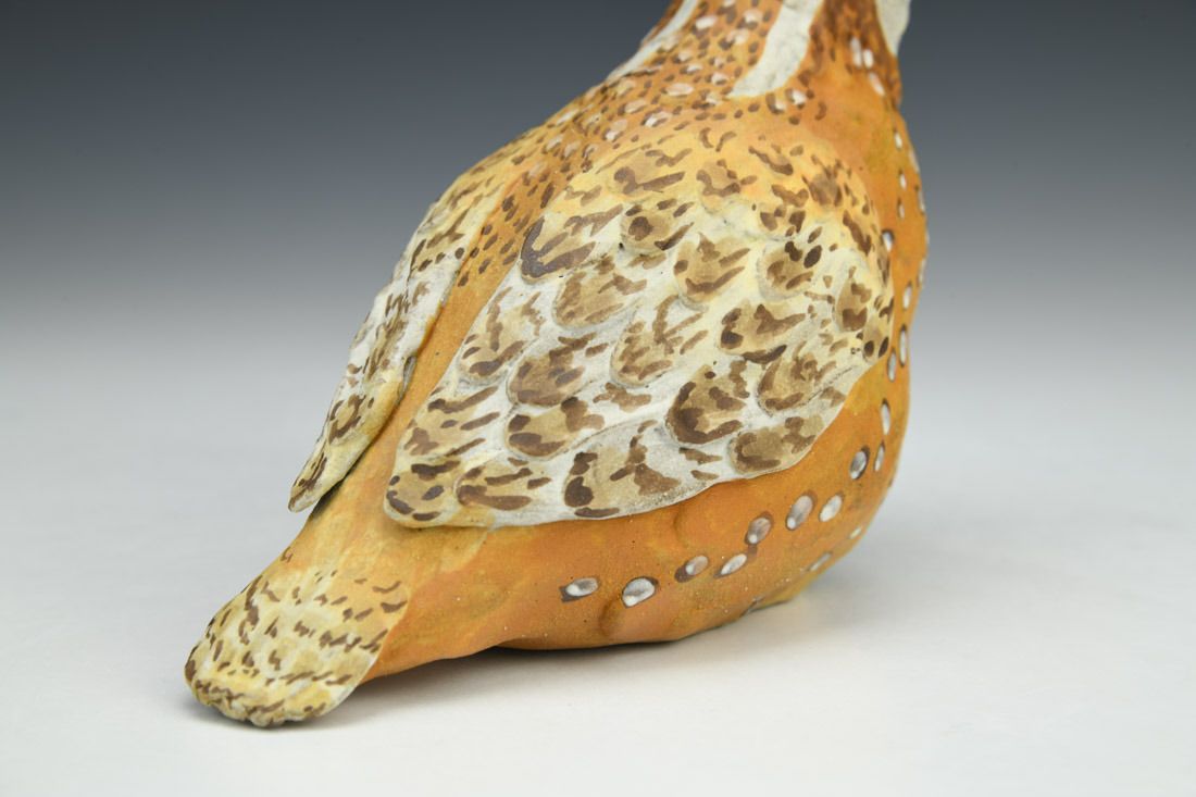 Black mountain clay, handbuilt solid and hollowed, slip, underglaze, cone 6 fired, 5 x 3.5 x 6 inches.