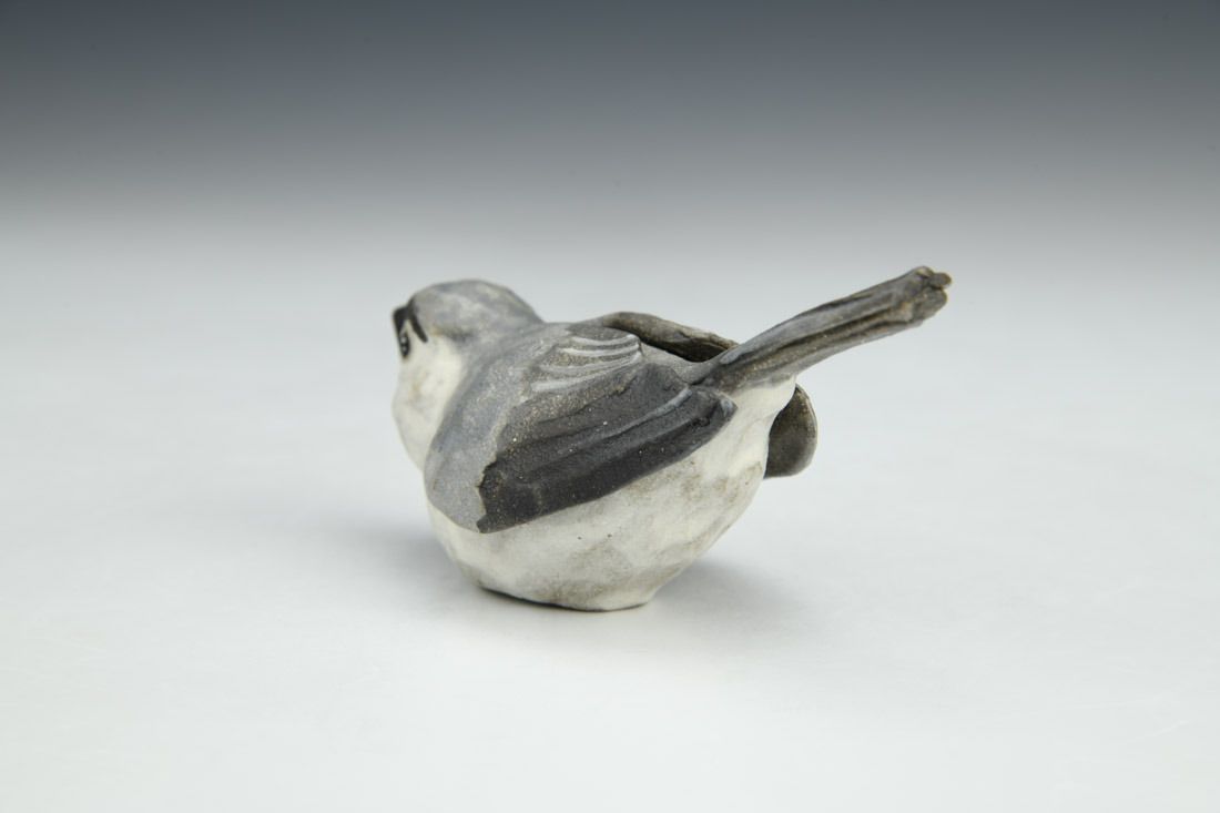 Black mountain clay, handbuilt solid and hollowed, slip, underglaze, cone 6 fired, 2 x 2 x 4 inches.