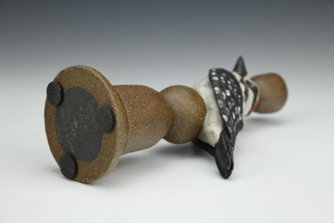 Black mountain clay, handbuilt solid and hollowed, slip, underglaze, cone 6 fired, 8 x 3.5 x 2.5 inches.