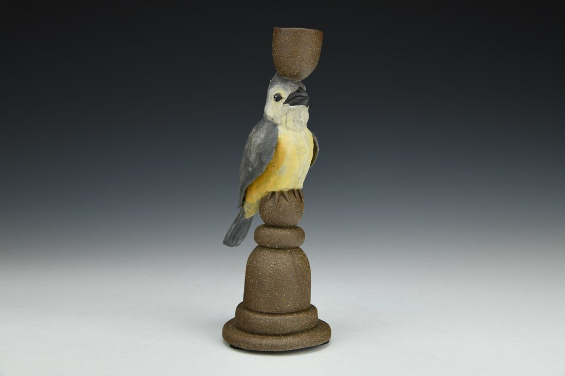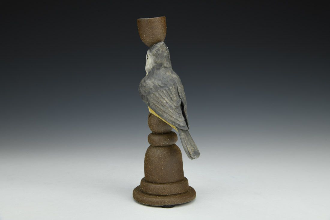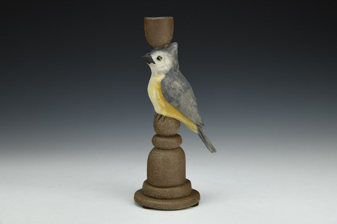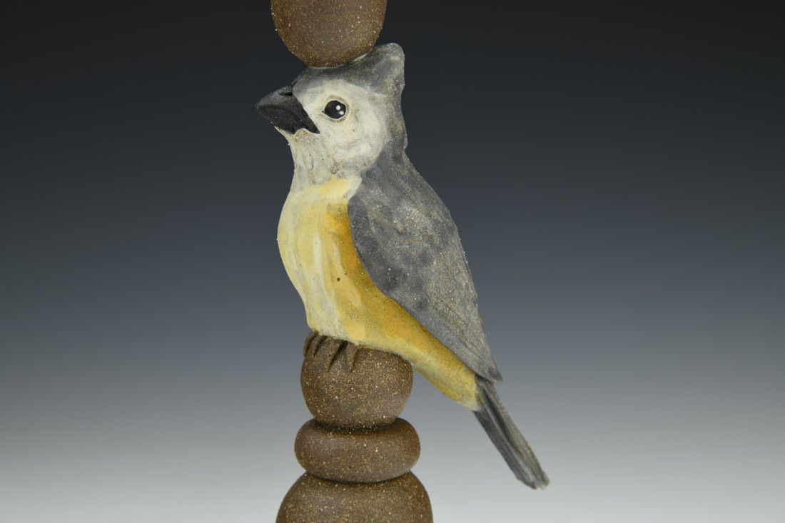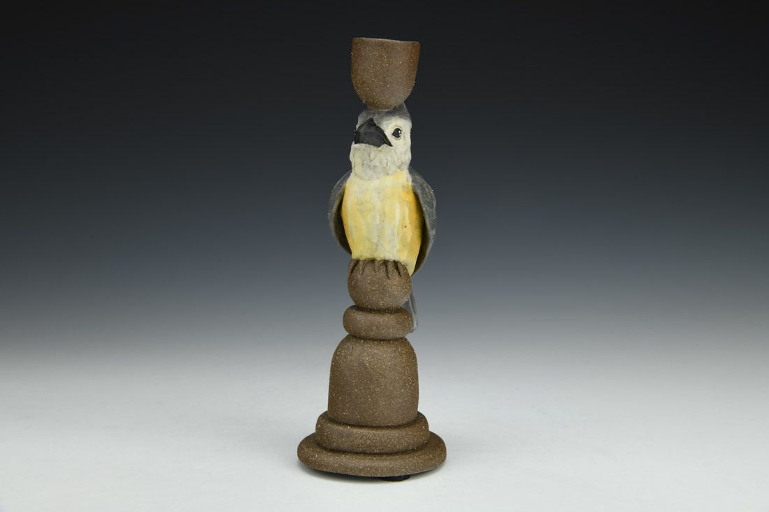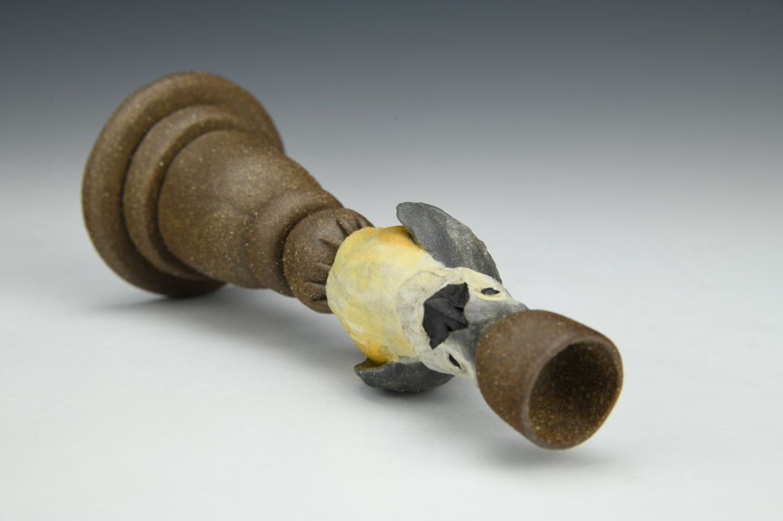 Black mountain clay, handbuilt solid and hollowed, slip, underglaze, cone 6 fired, 8 x 3 x 2.5 inches.