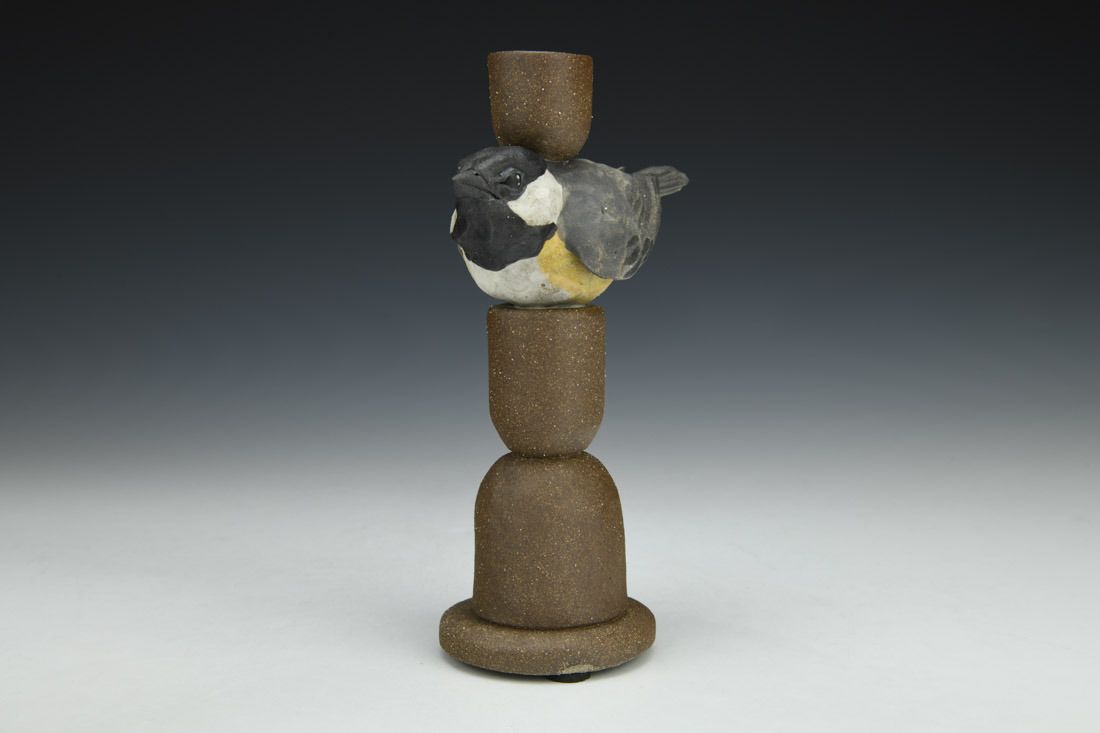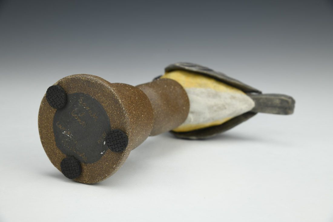 Black mountain clay, handbuilt solid and hollowed, slip, underglaze, cone 6 fired, 8 x 4.5 x 2.5 inches.