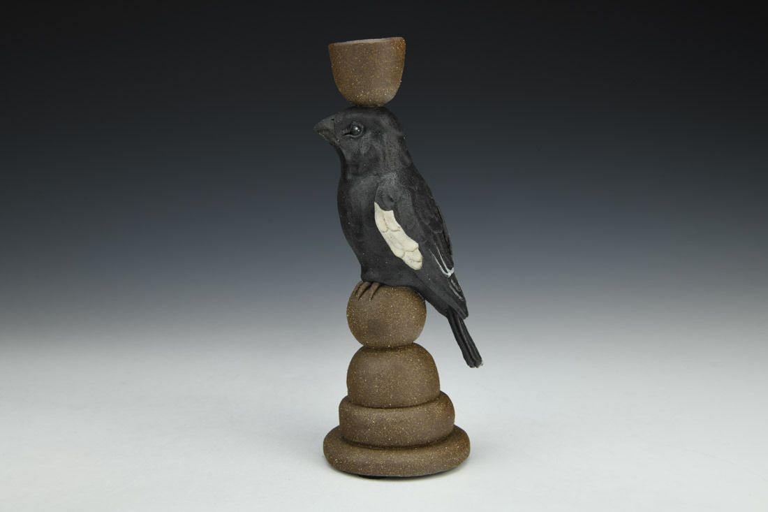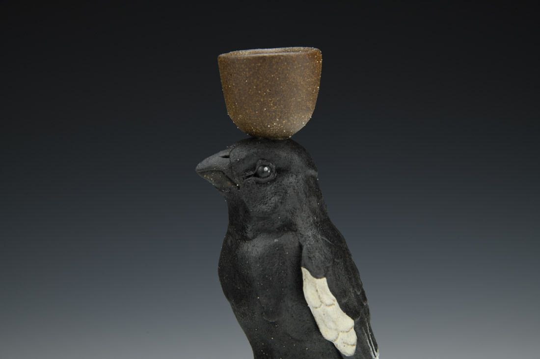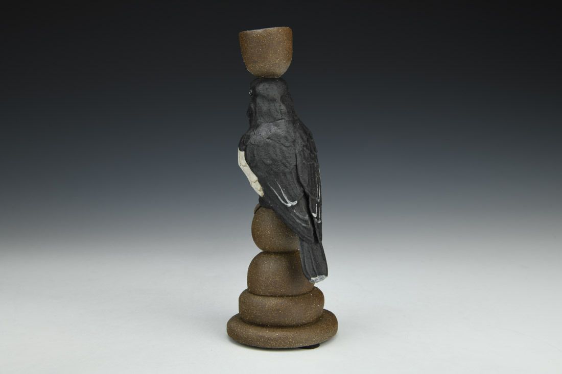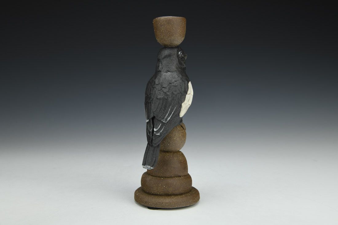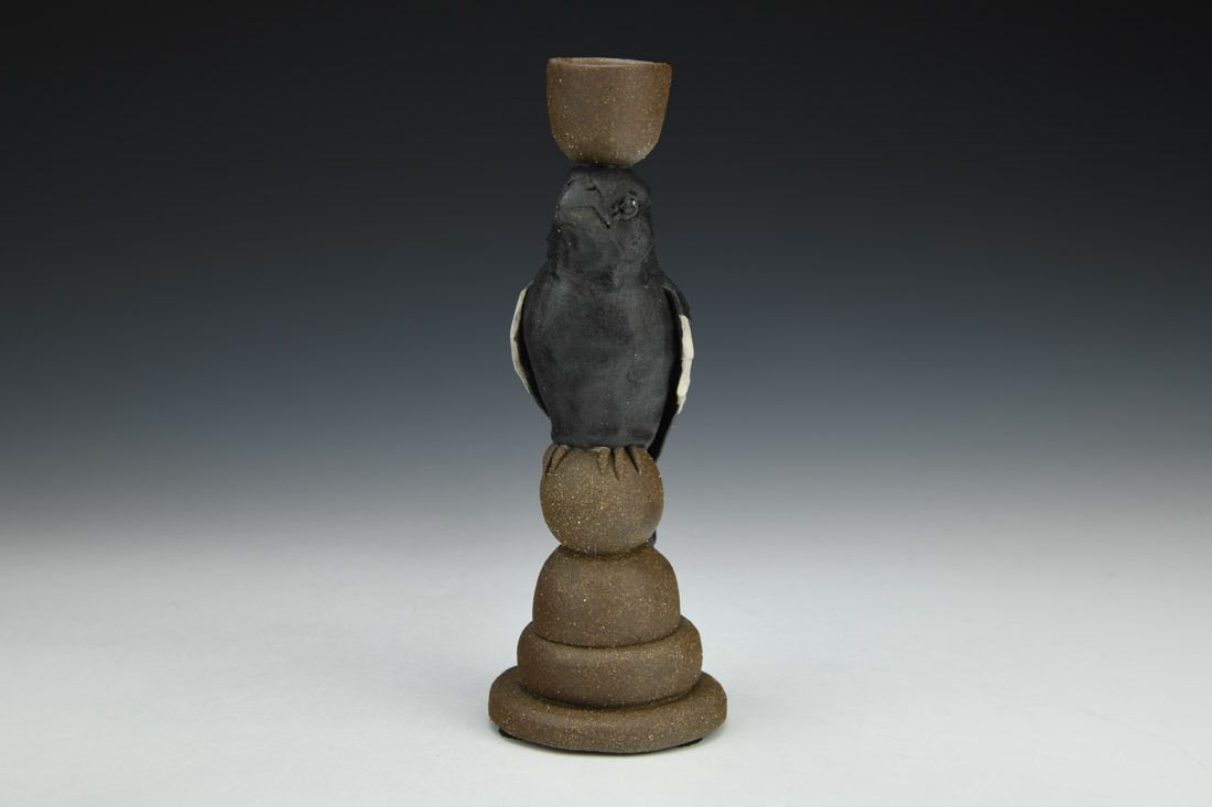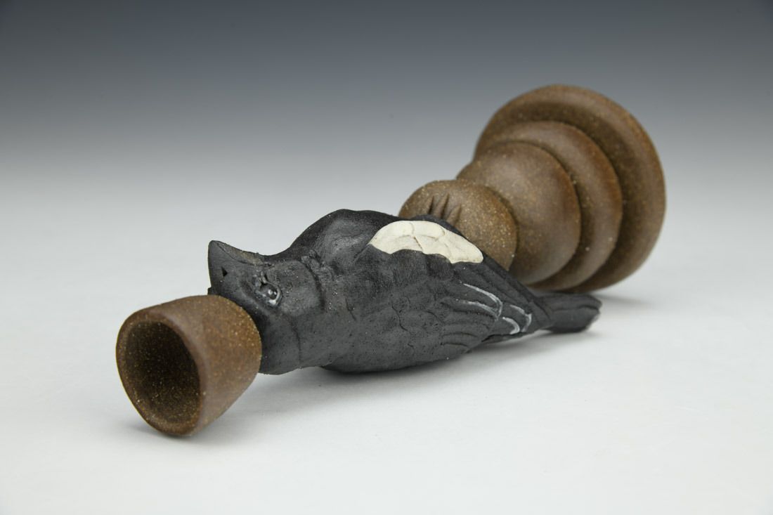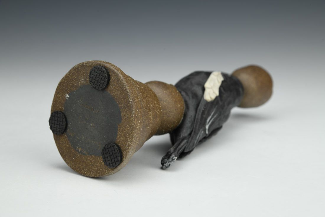 Black mountain clay, handbuilt solid and hollowed, slip, underglaze, cone 6 fired, 7.5 x 3 x 2.5 inches.