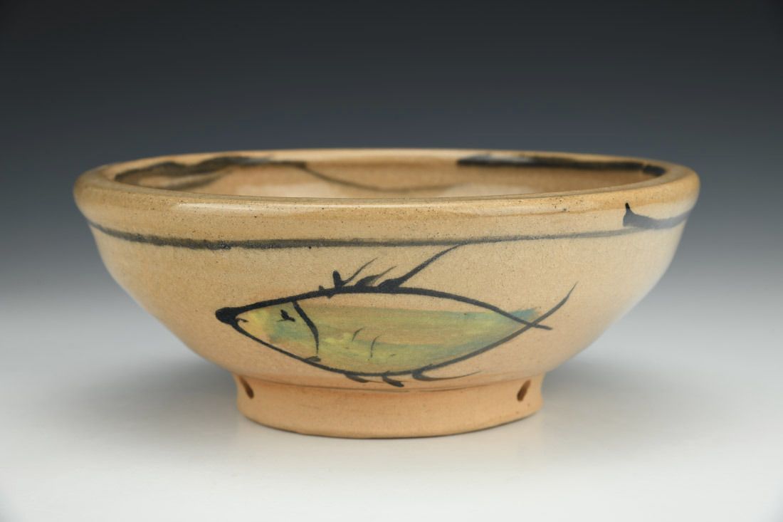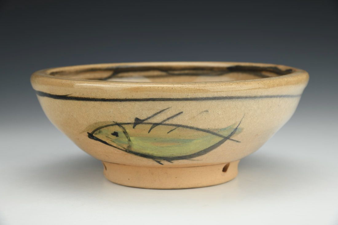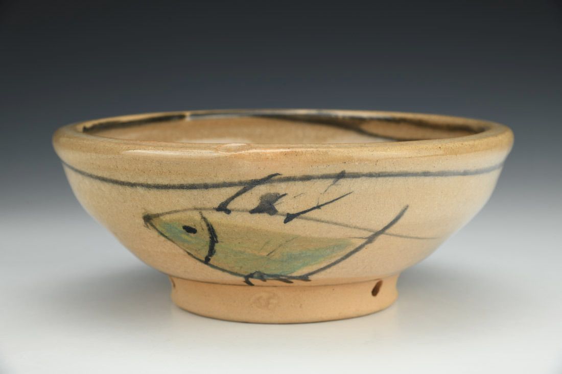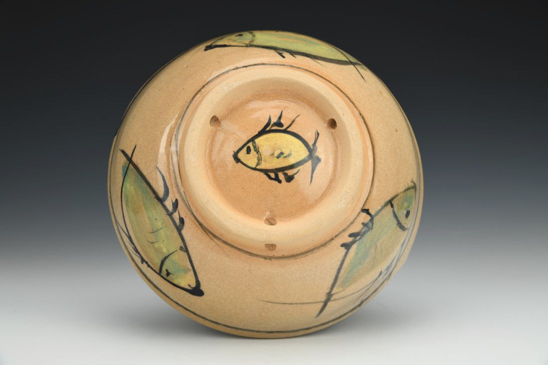 Stoneware, wheel thrown, slip, cone 1 fired, 7.75 x 3 x 3 inches.
