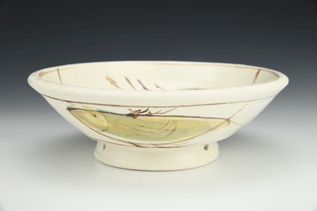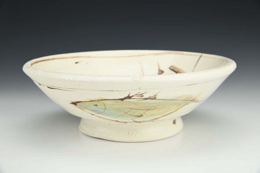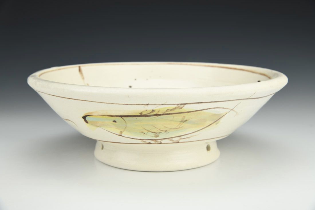 Porcelain, wheel thrown, slip, cone 1 fired, 10 x 3.25 x 3.25 inches.