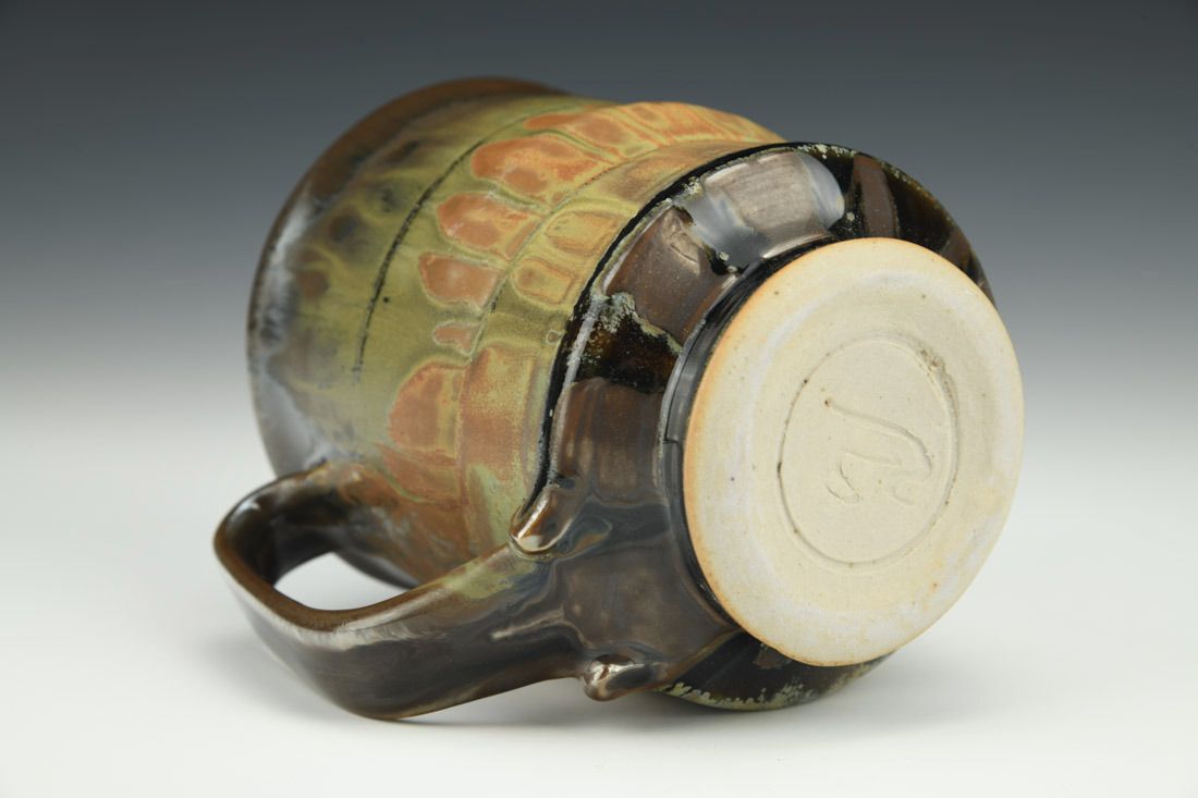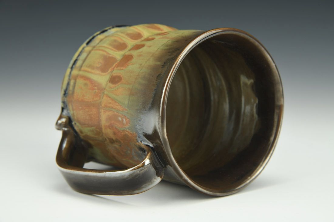 White stoneware, wheel thrown and altered, multiple glazes, raw ash, cone 10 reduction fired, 4.5 x 4.75 x 3.5 inches.