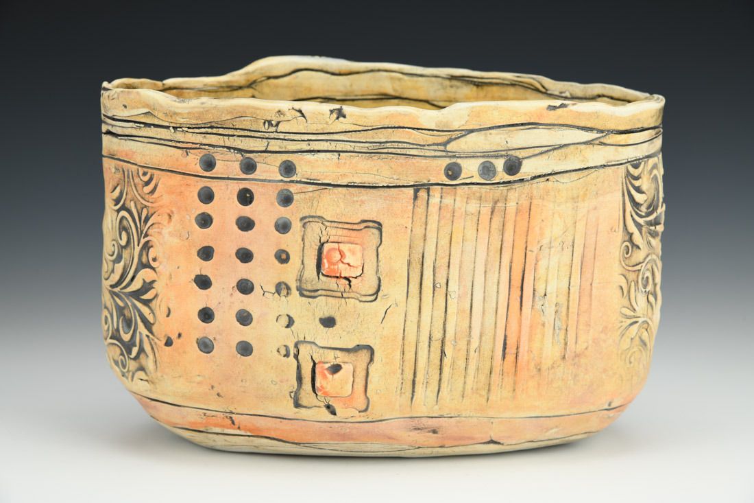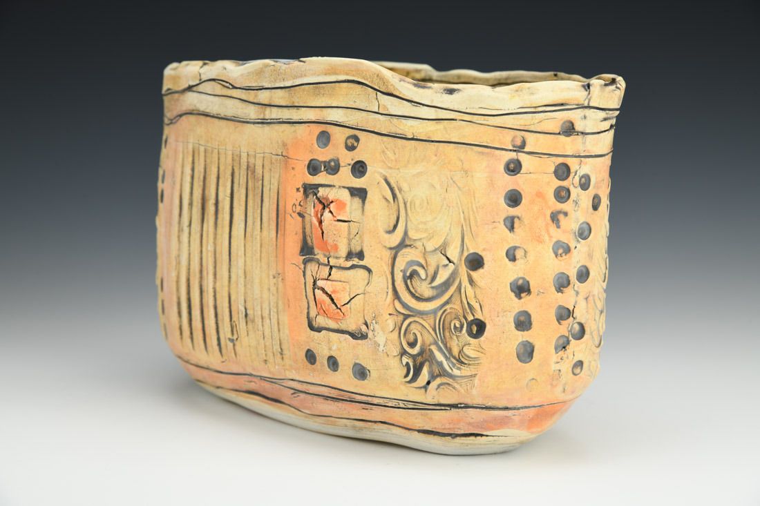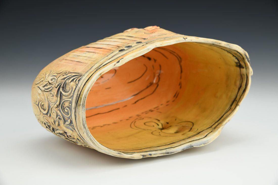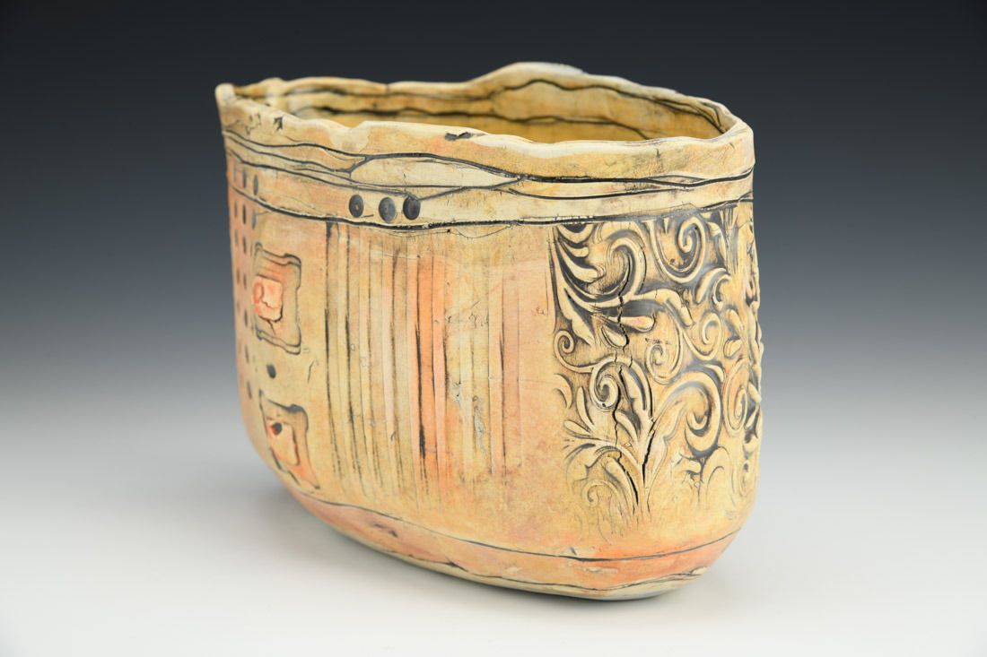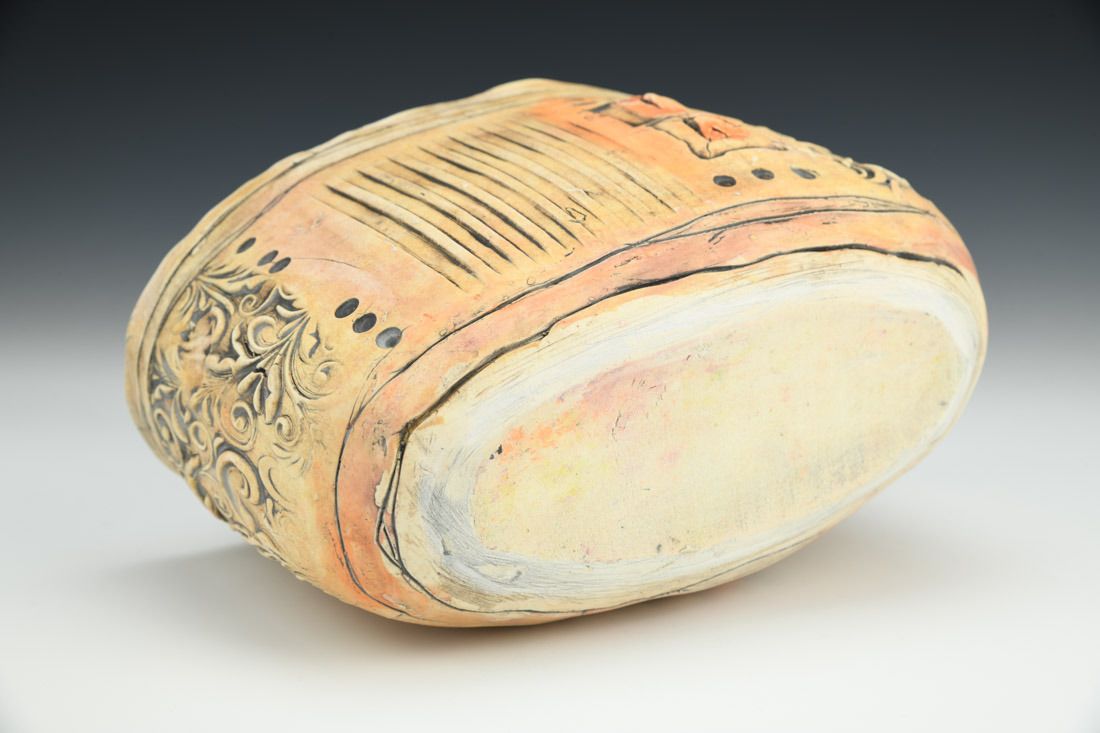 White earthenware, cone 05 electric fired, 5.5 x 8 x 4.5 inches.