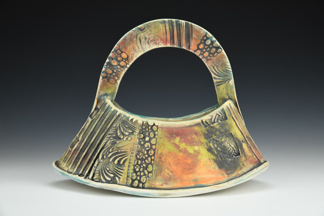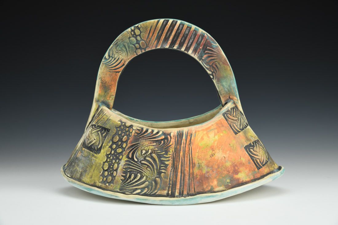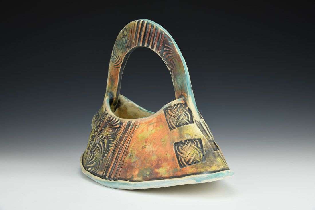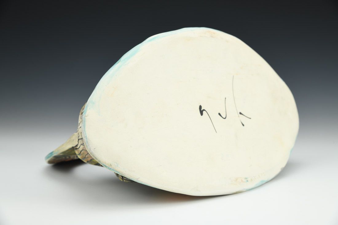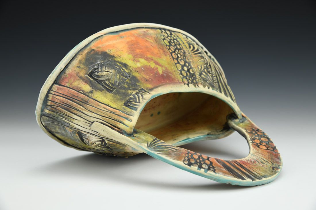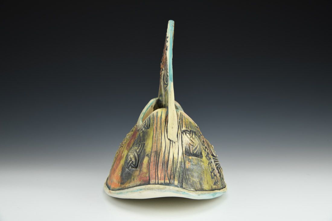 White earthenware, hand built, cone 05 electric fired, 9 x 11 x 6 inches.