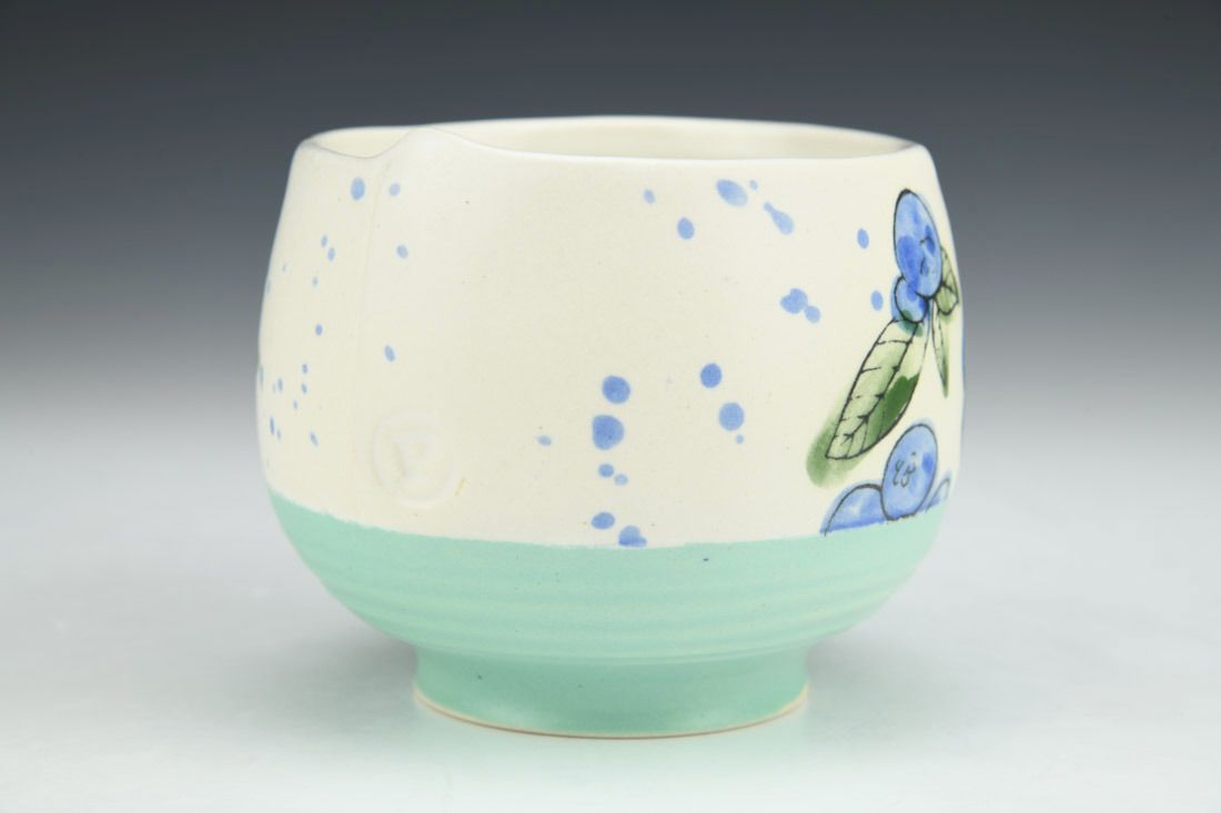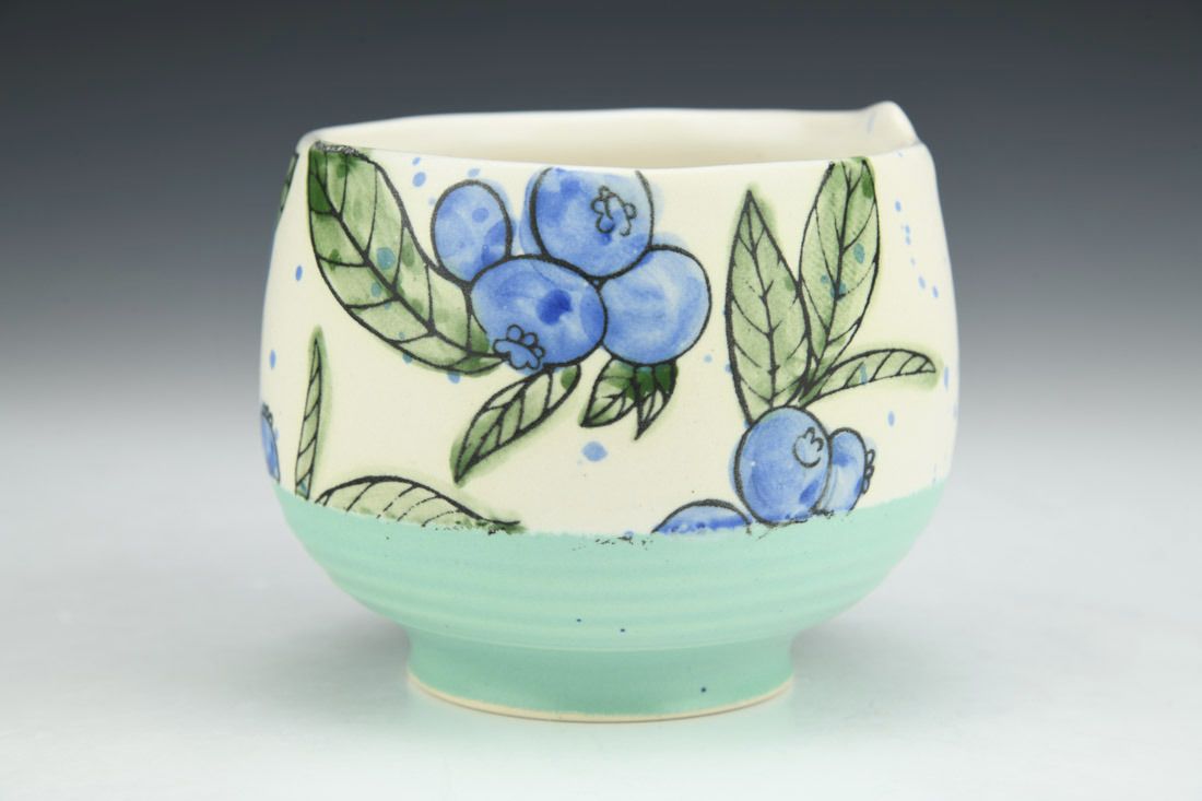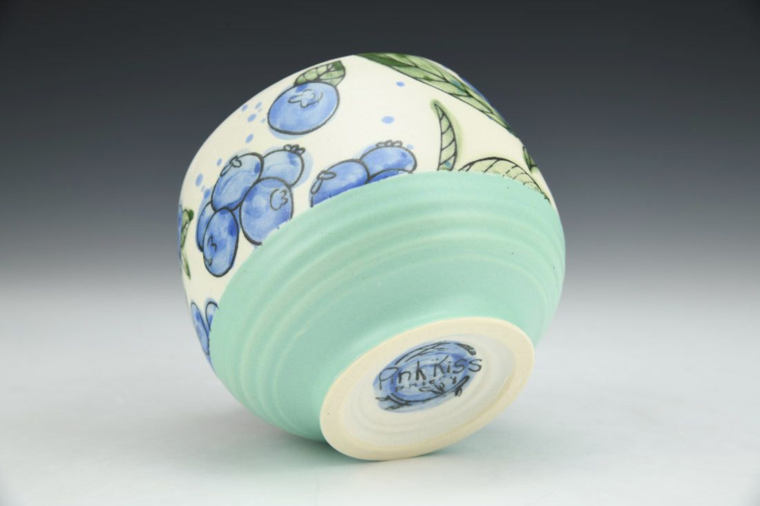 White stoneware, wheel thrown and hand built, screenprinted illustration, underglaze, glaze, cone 5 electric fired, 3.75 x 4.5 x 4.25 inches.