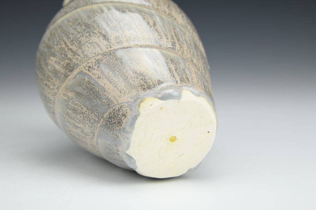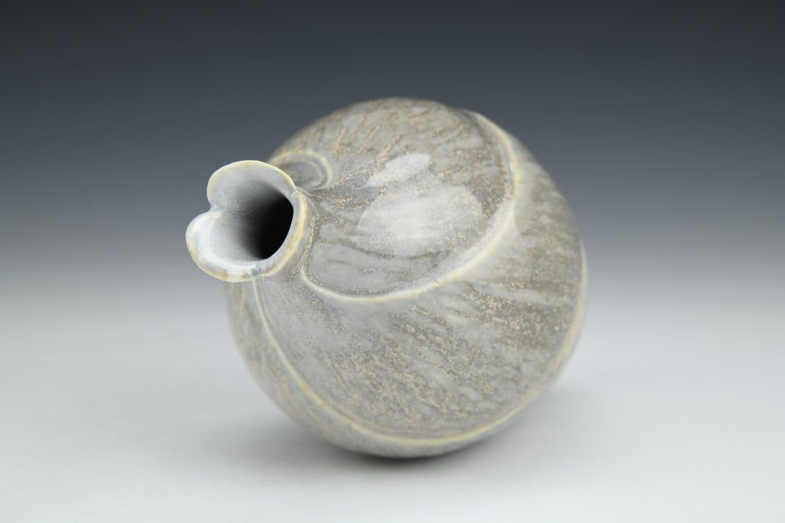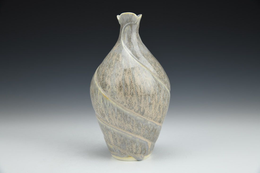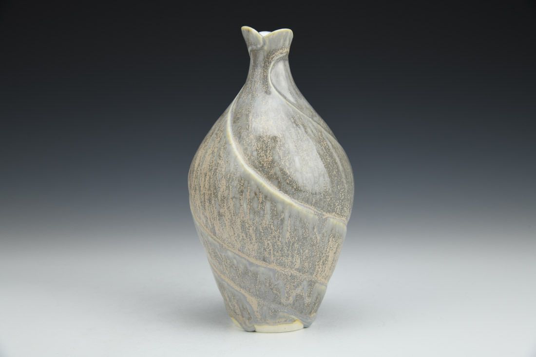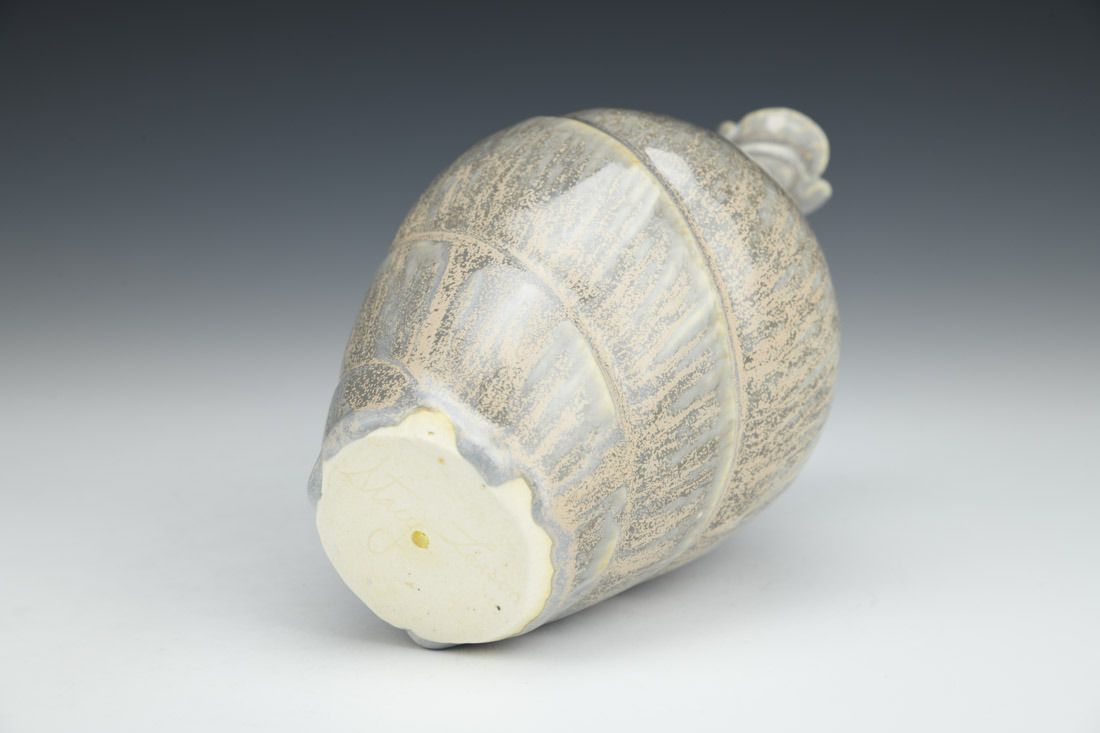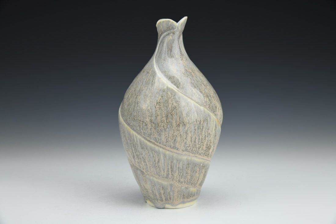 Porcelain with cubic zirconia, wheel thrown and altered, carved, stone-setting, cone 6 electric fired, 6.5 x 4 x 4 inches.