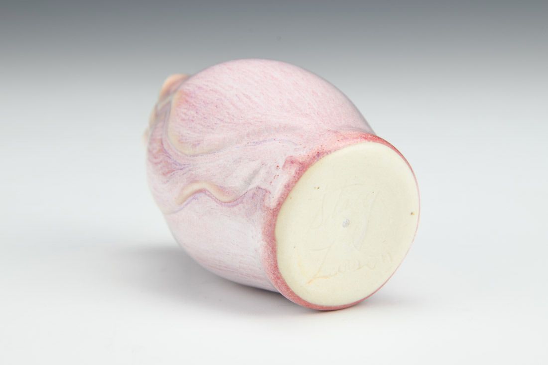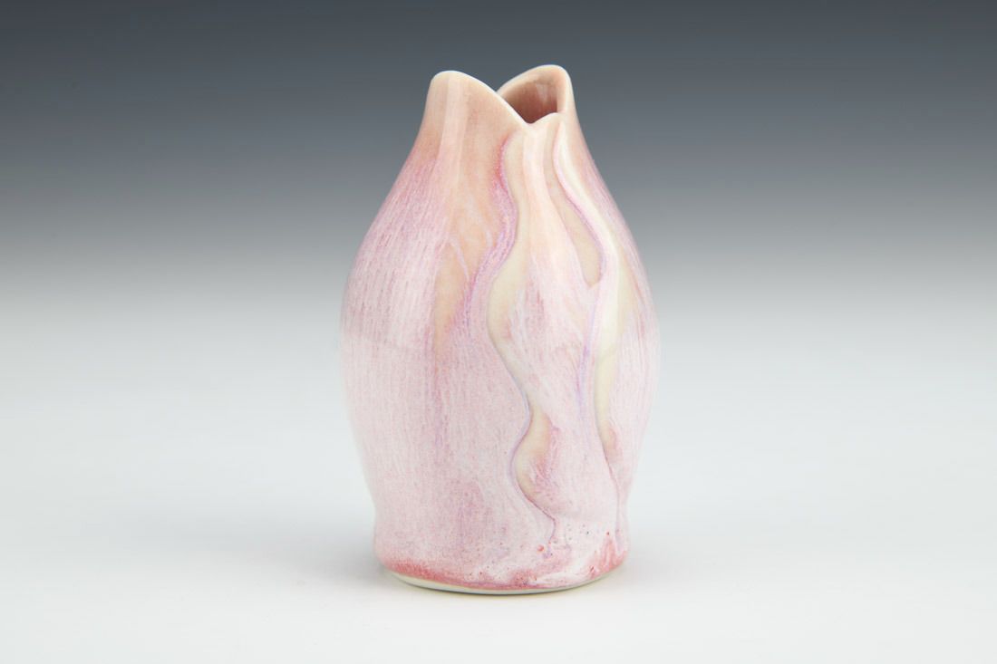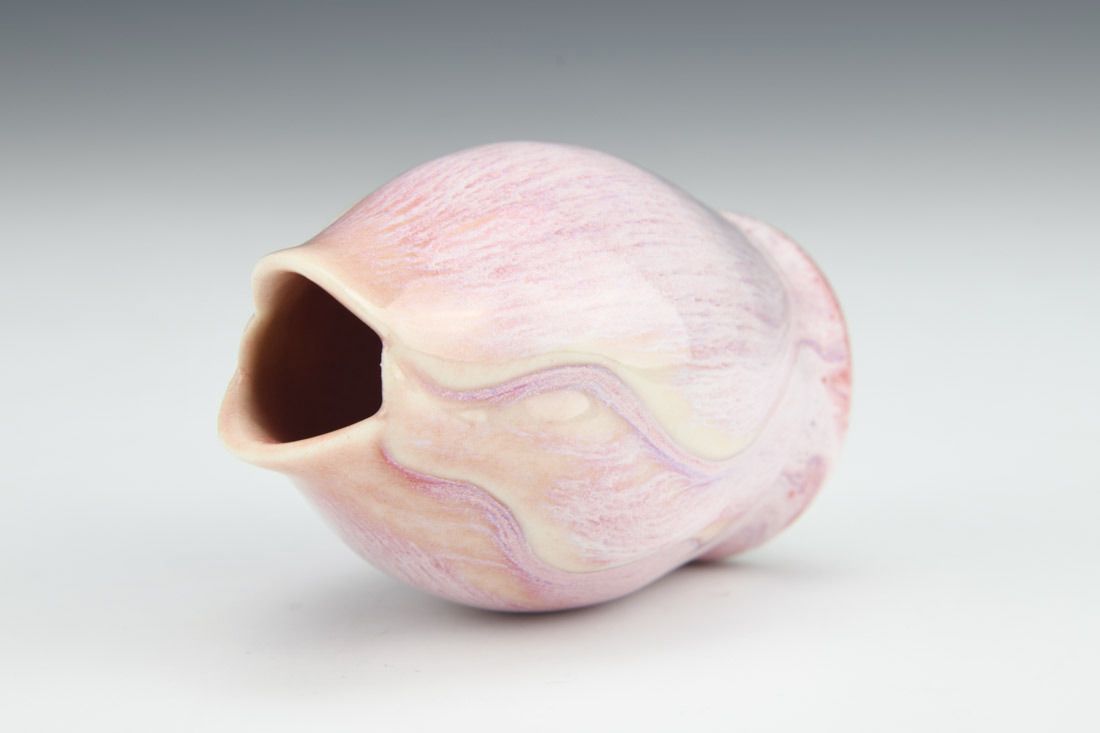 Porcelain with cubic zirconia, wheel thrown and altered, carved, cone 6 electric fired, 3.25 x 2 x 2 inches.