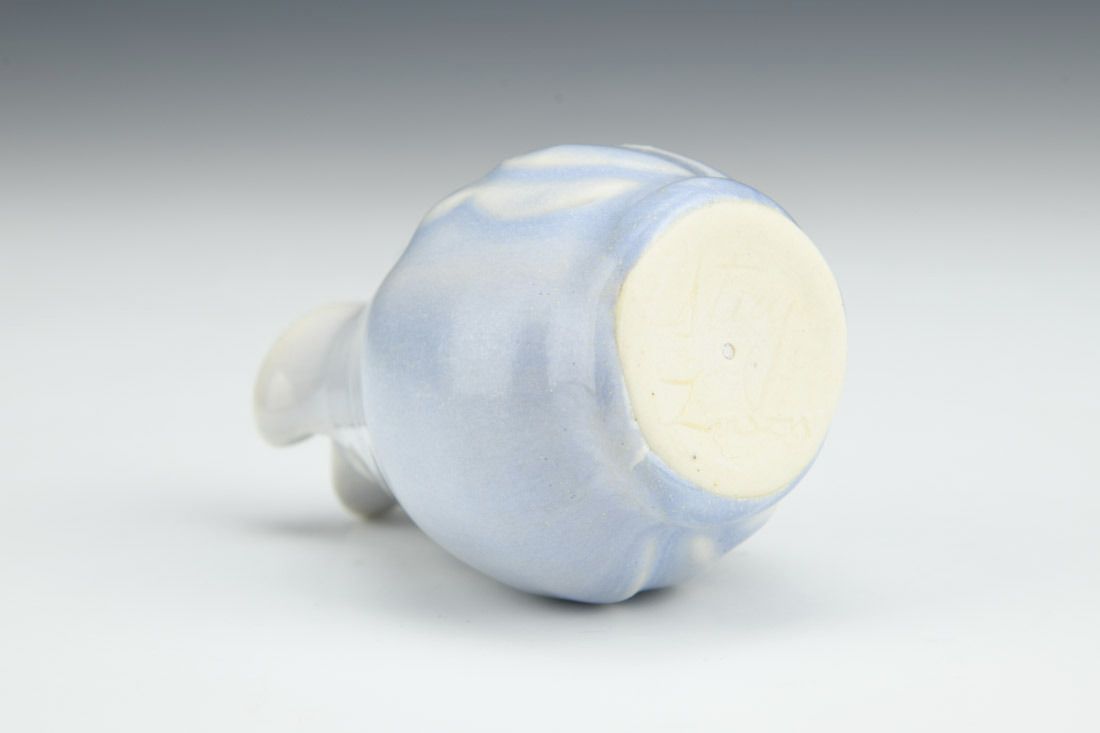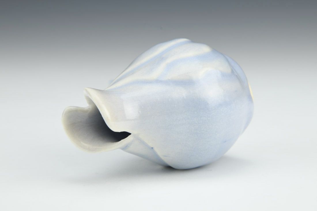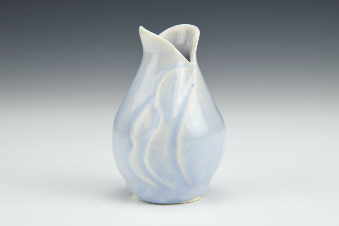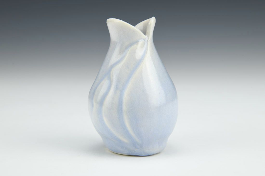 Porcelain with cubic zirconia, wheel thrown and altered, carved, cone 6 electric fired, 3.25 x 2.25 x 2.25 inches.