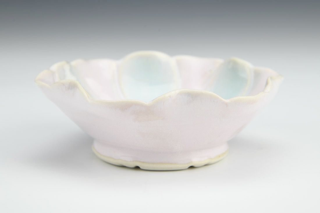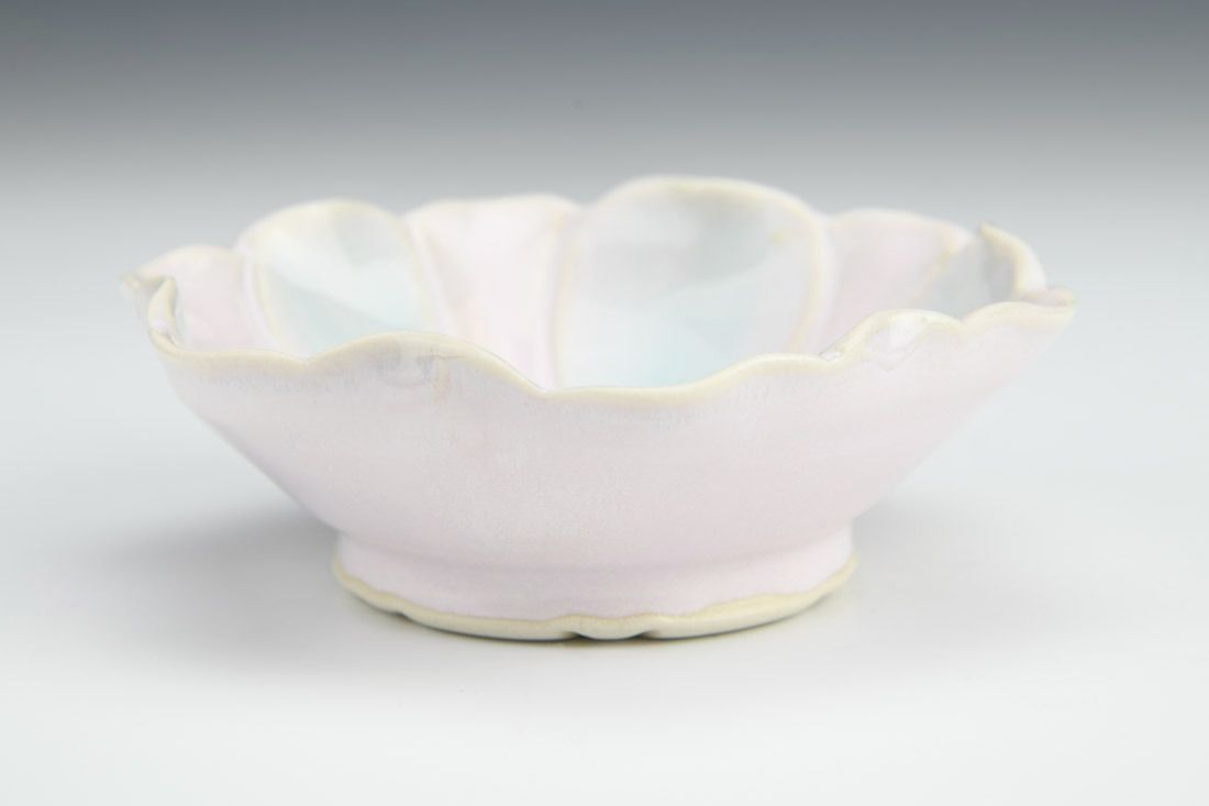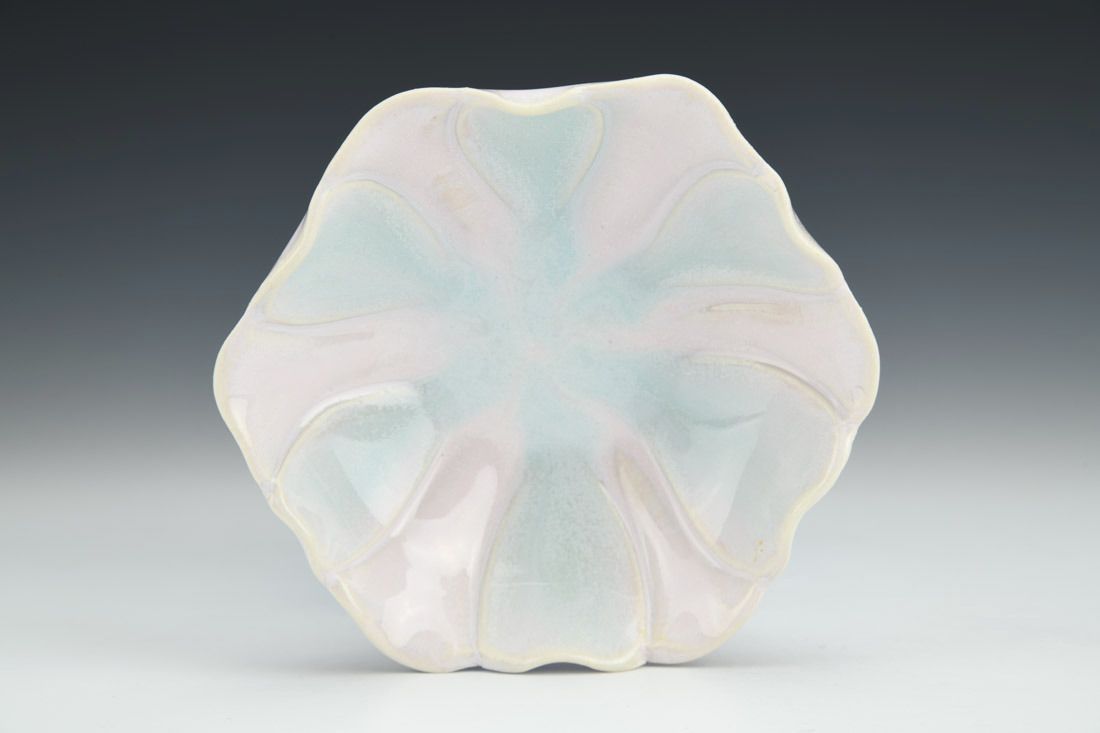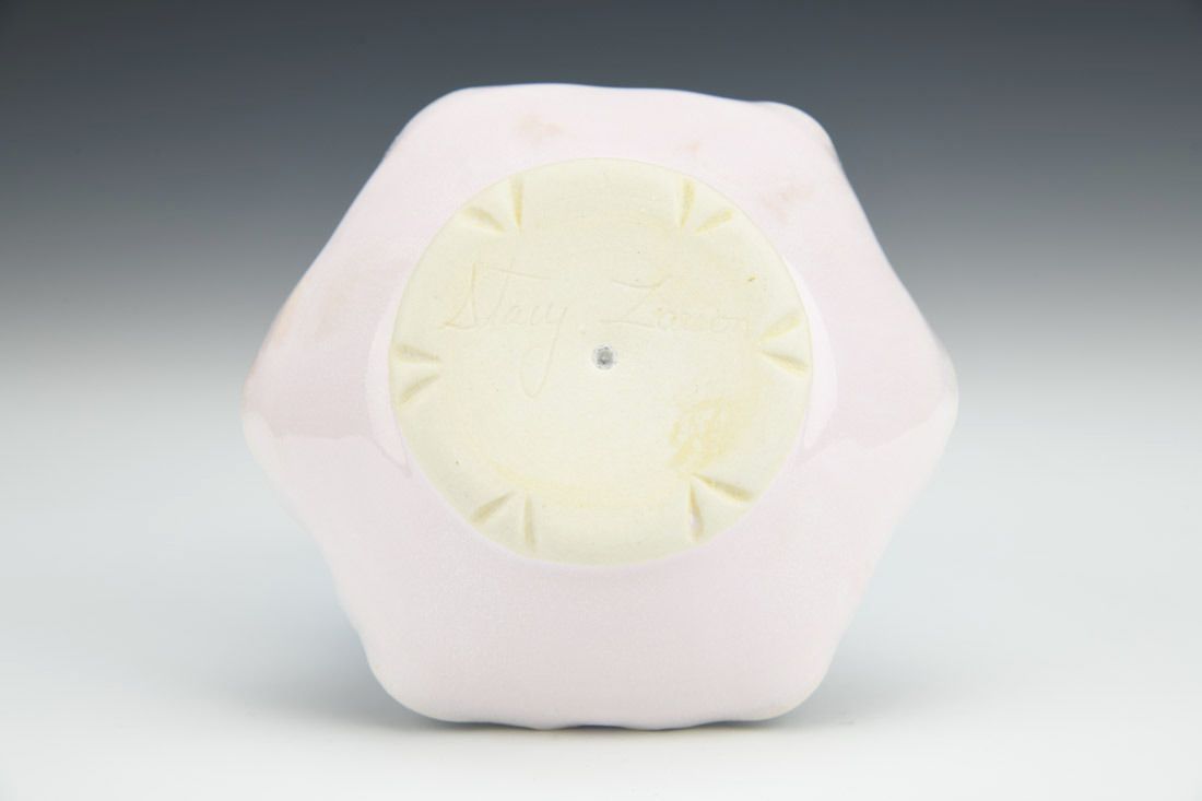 Porcelain with cubic zirconia, wheel thrown and altered, carved, cone 6 electric fired, 1.75 x 4.5 x 4.5 inches.