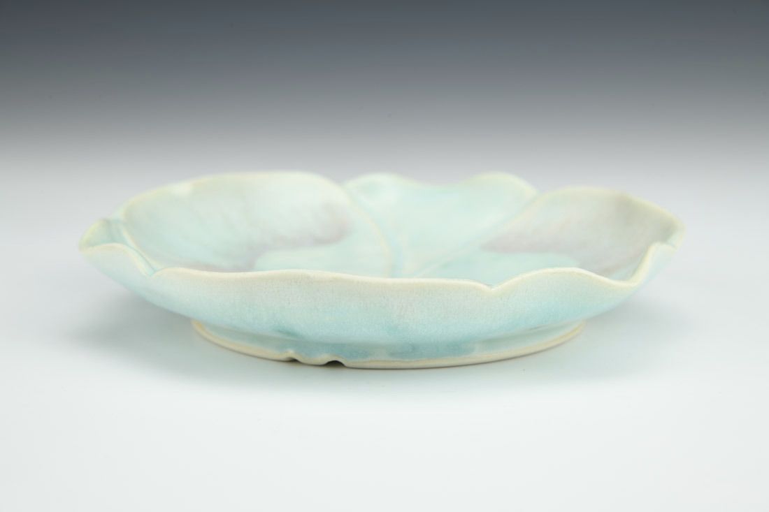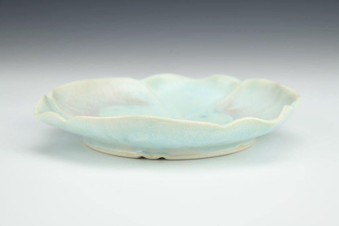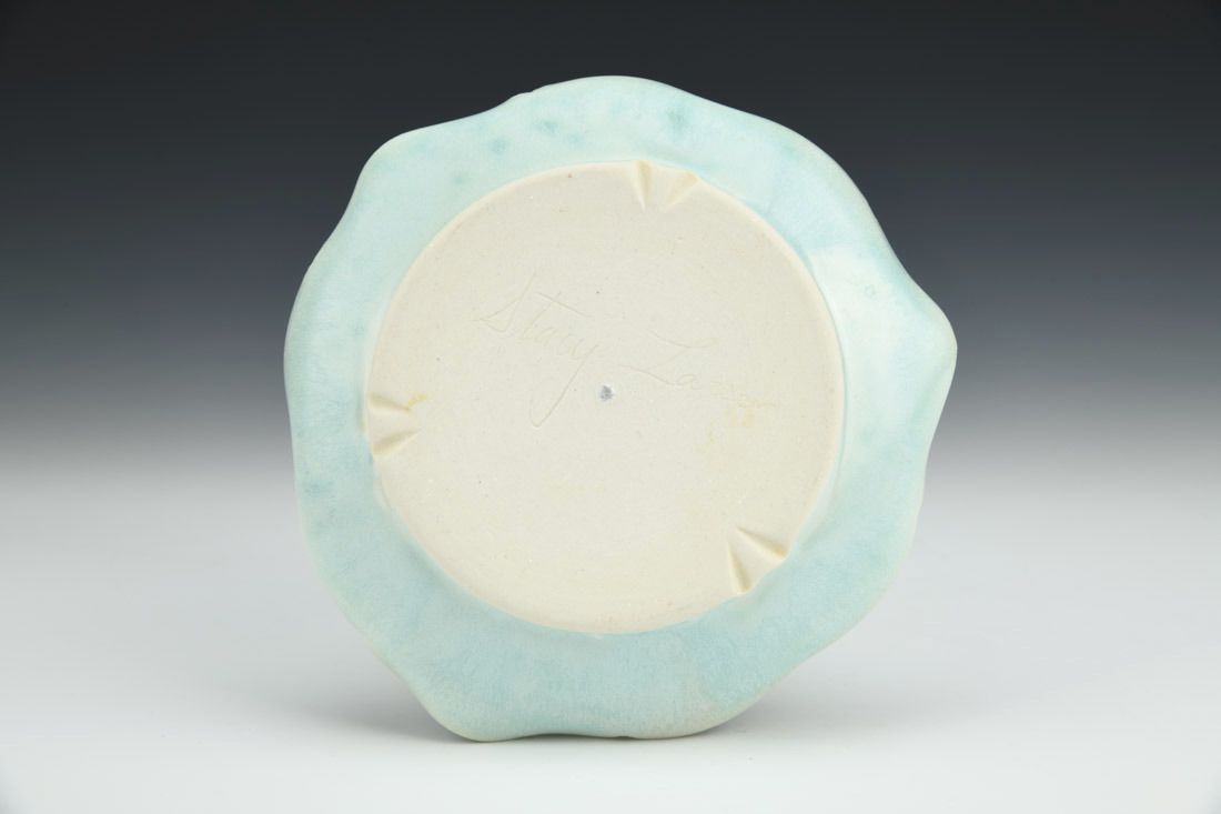 Porcelain with cubic zirconia, wheel thrown and altered, carved, cone 6 electric fired, 1 x 6 x 5.75 inches.