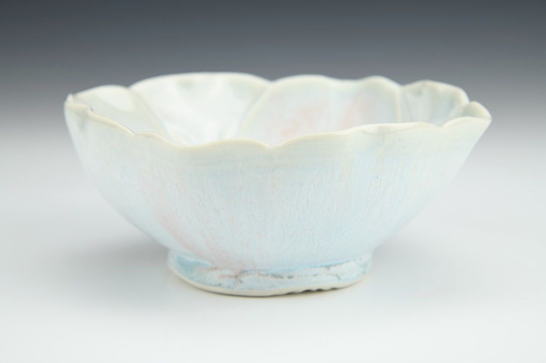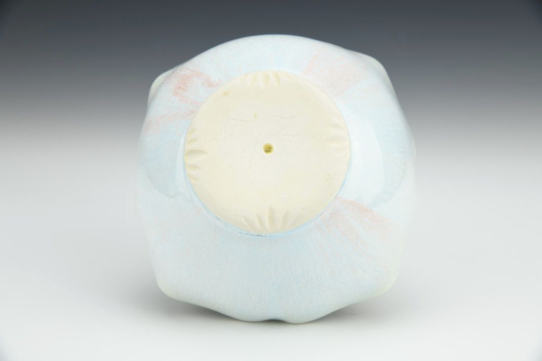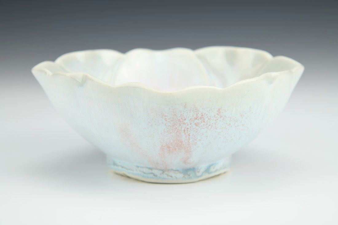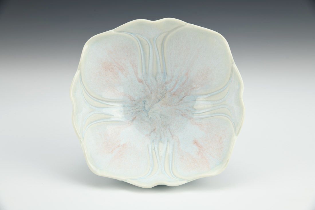 Porcelain with cubic zirconia, wheel thrown and altered, carved, cone 6 electric fired, 2.25 x 5 x 5 inches.