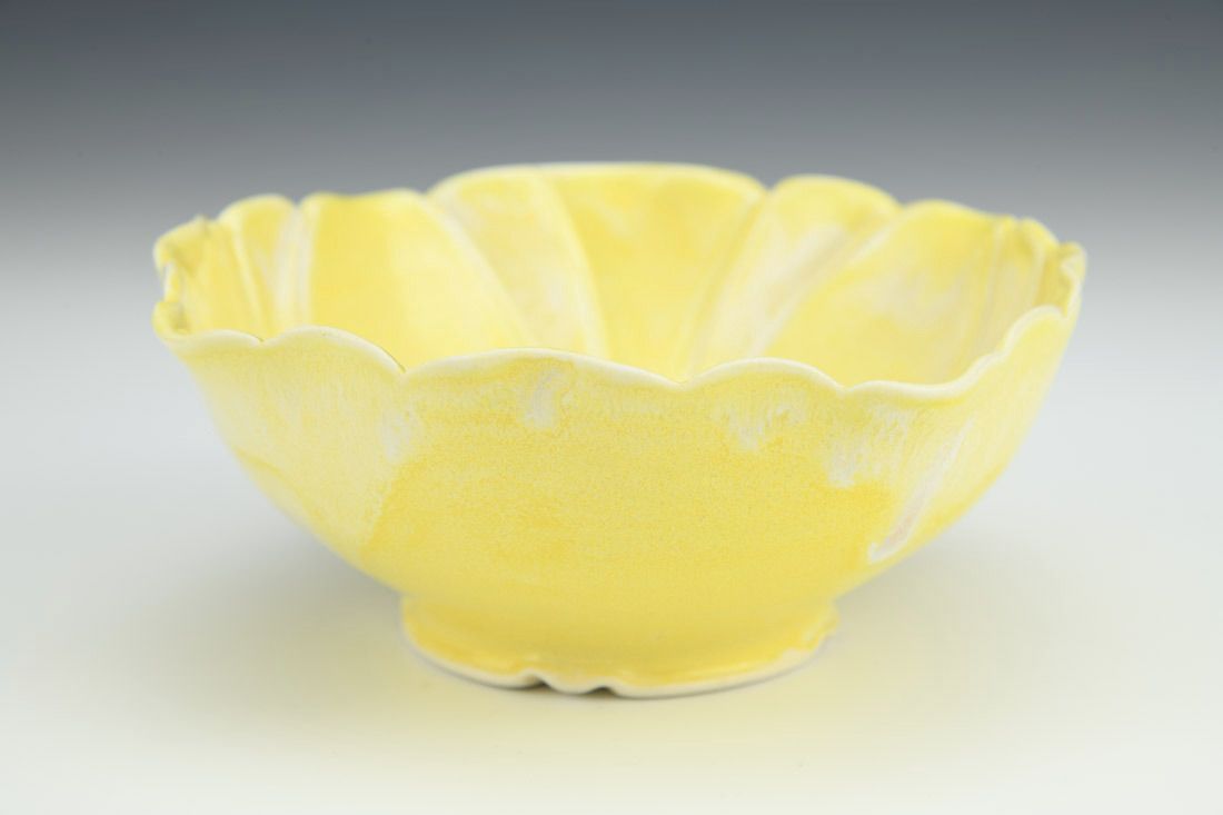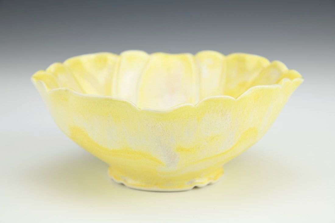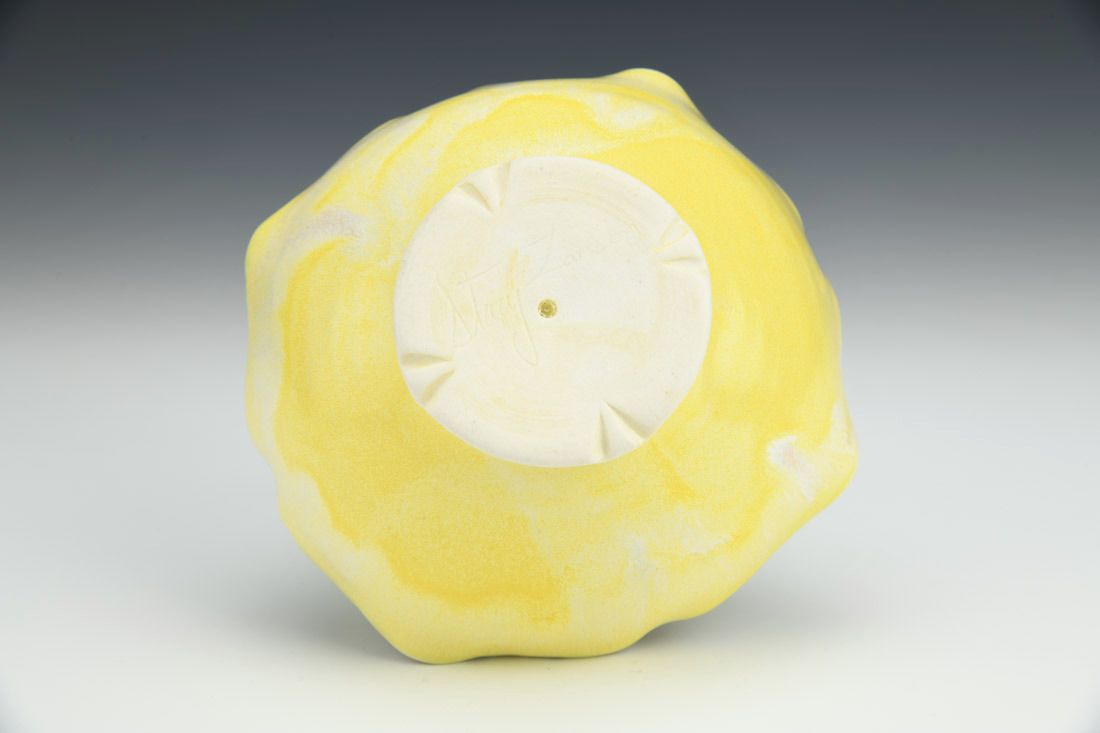 Porcelain with cubic zirconia, wheel thrown and altered, carved, cone 6 electric fired, 2.5 x 5.75 x 5.75 inches.