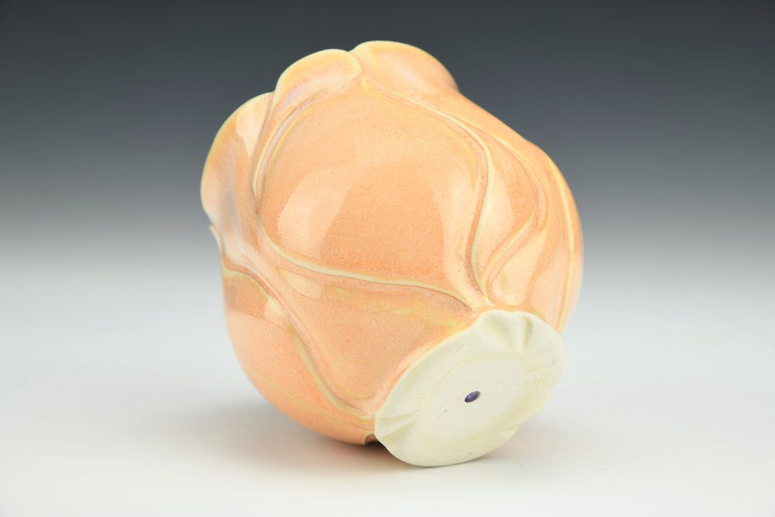 Porcelain with cubic zirconia, wheel thrown and altered, carved, cone 6 electric fired, 3.5 x 3.5 x 3.5 inches.