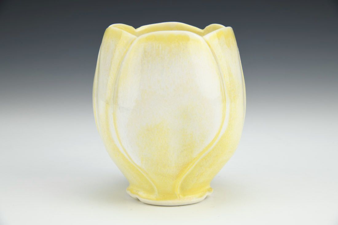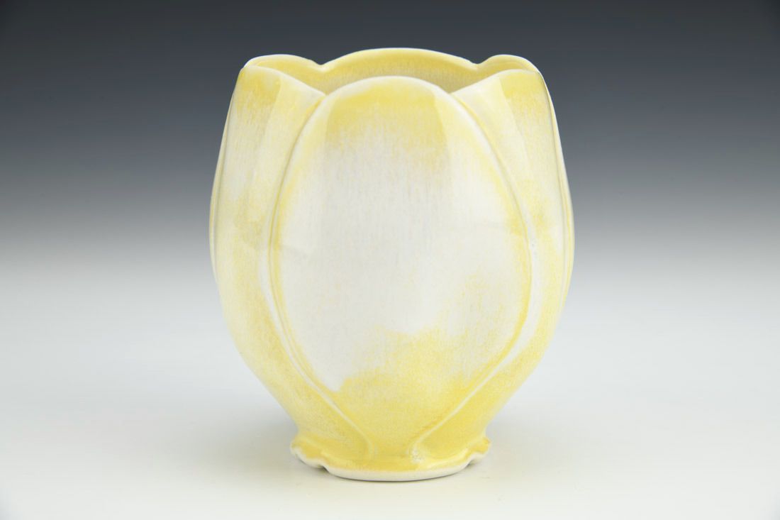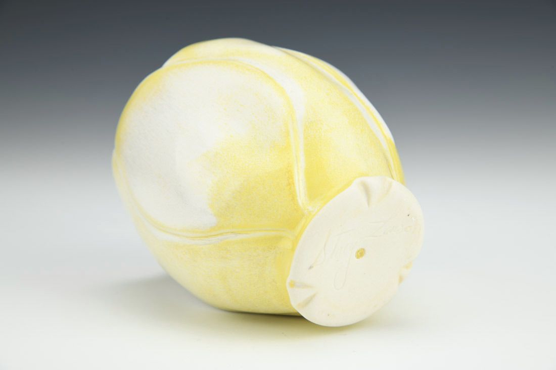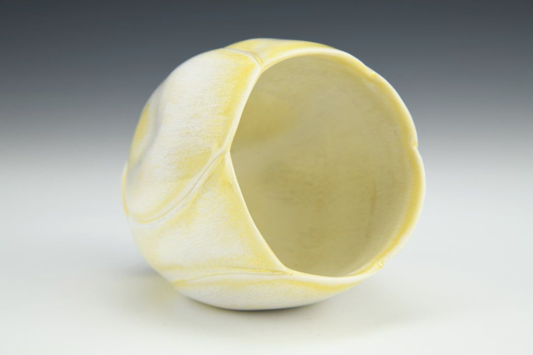 Porcelain with cubic zirconia, wheel thrown and altered, carved, cone 6 electric fired, 4 x 3.5 x 3.5 inches.