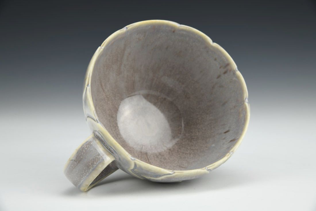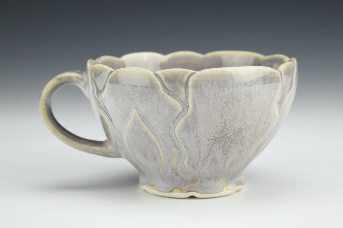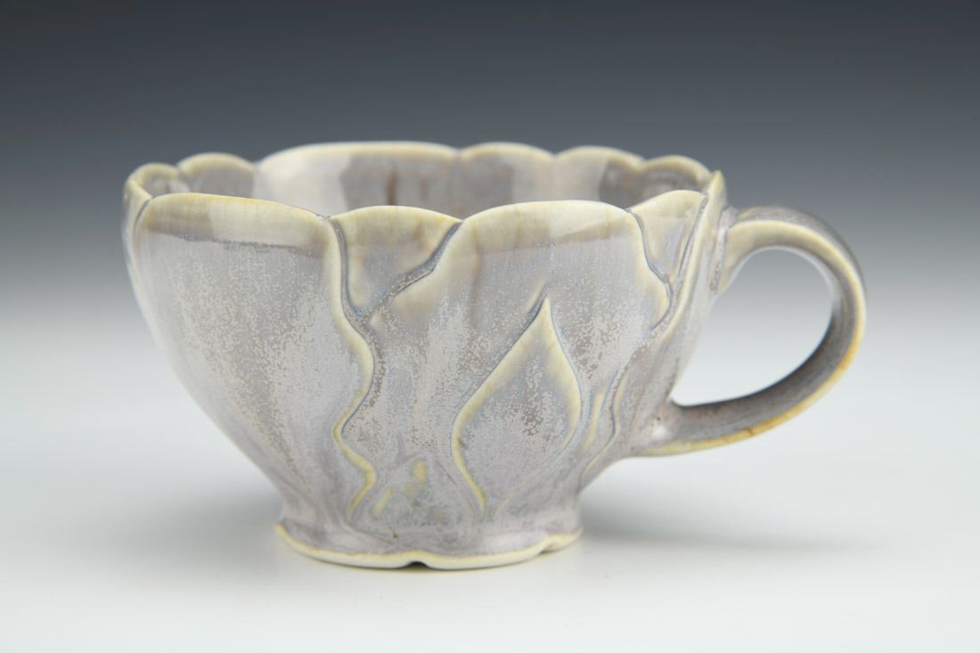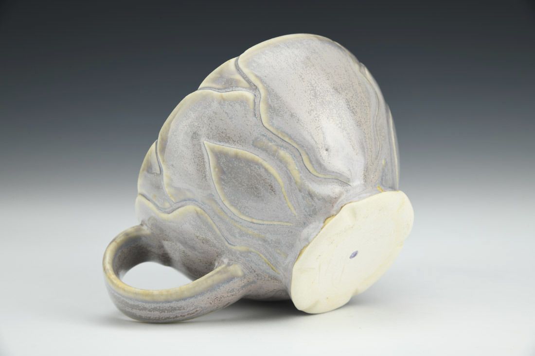 Porcelain with cubic zirconia, wheel thrown and altered, carved, cone 6 electric fired, 2.75 x 5 x 4.25 inches.