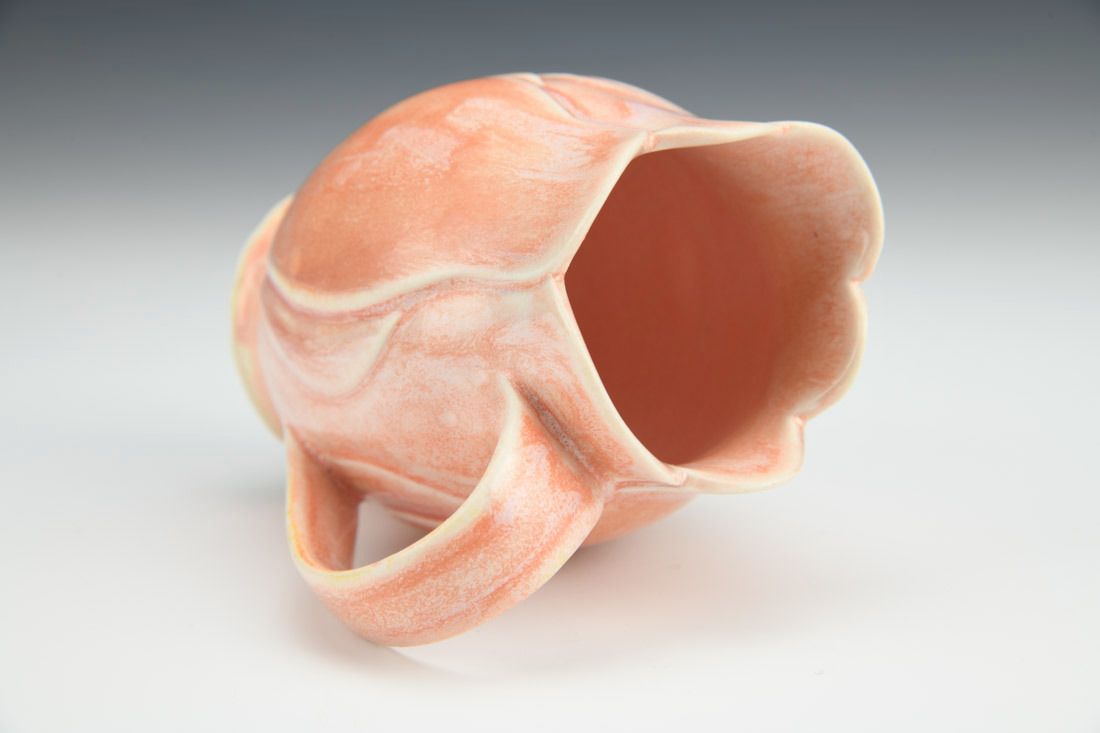 Porcelain with cubic zirconia, wheel thrown and altered, carved, cone 6 electric fired, 4.5 x 4.25 x 3 inches.