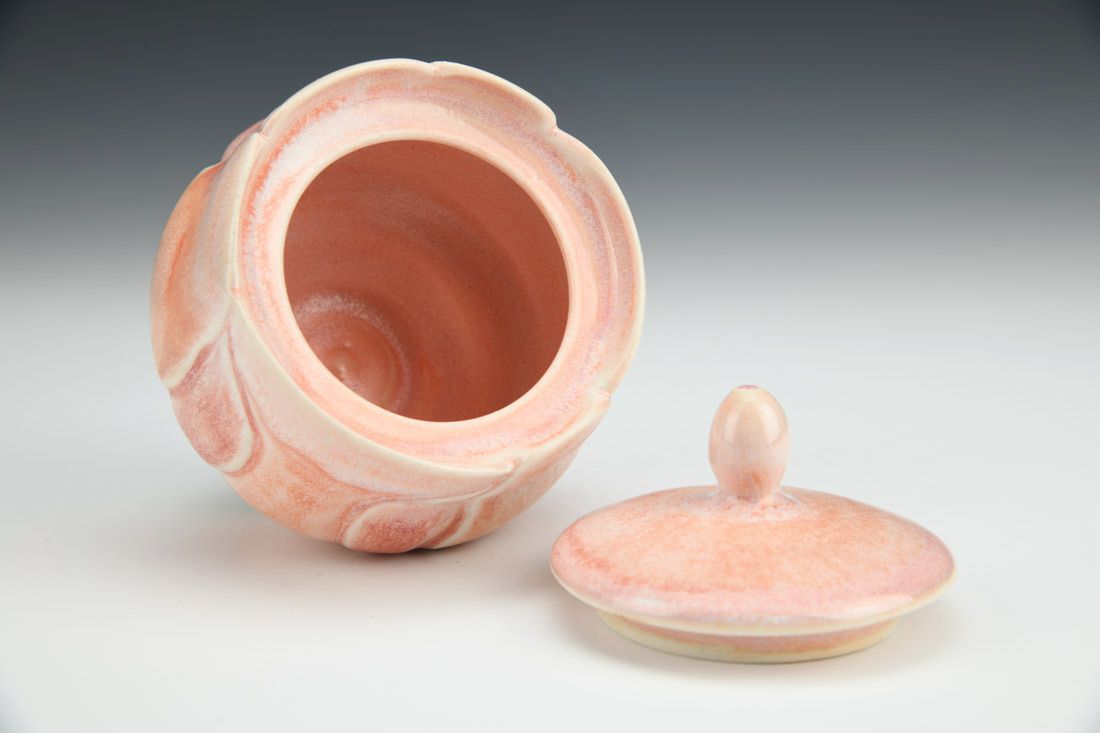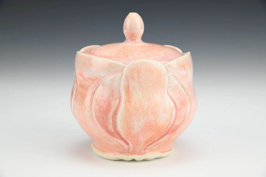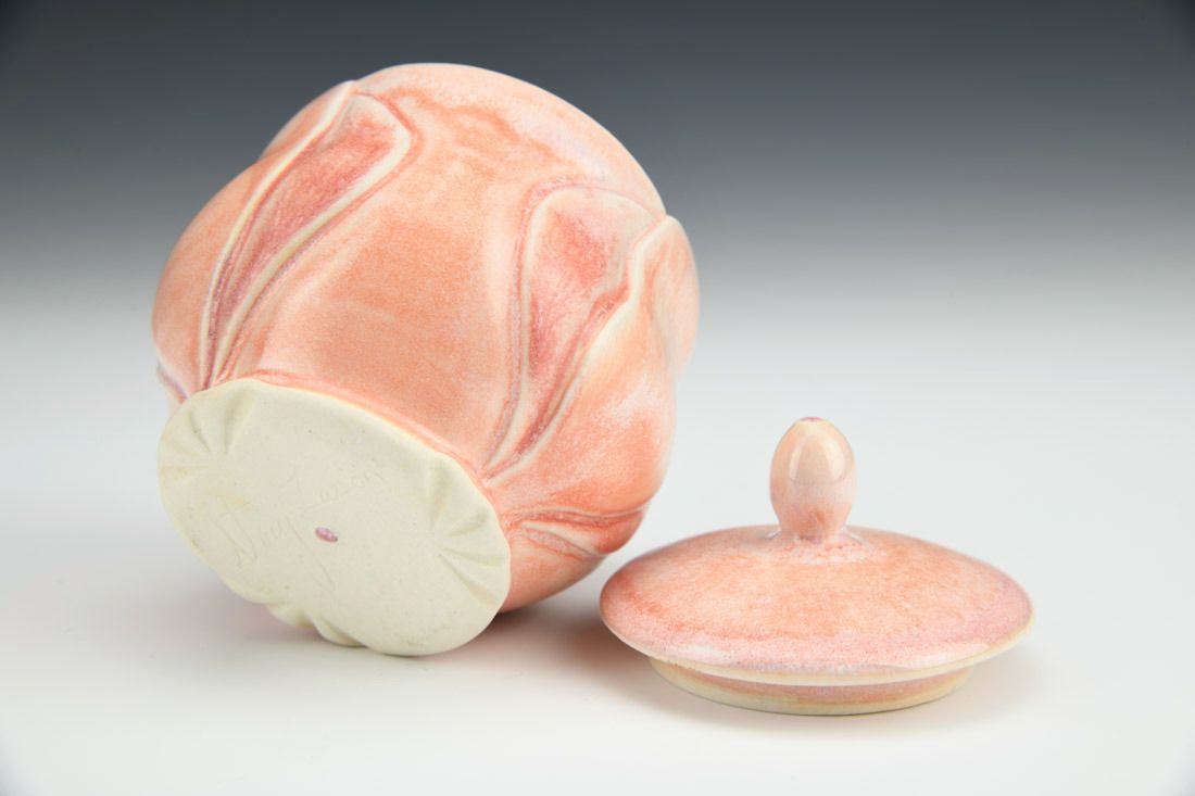 Porcelain with cubic zirconia, wheel thrown and altered, carved, cone 6 electric fired, 4.25 x 3.75 x 3.75 inches.