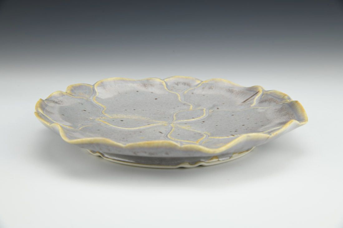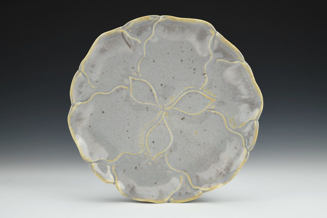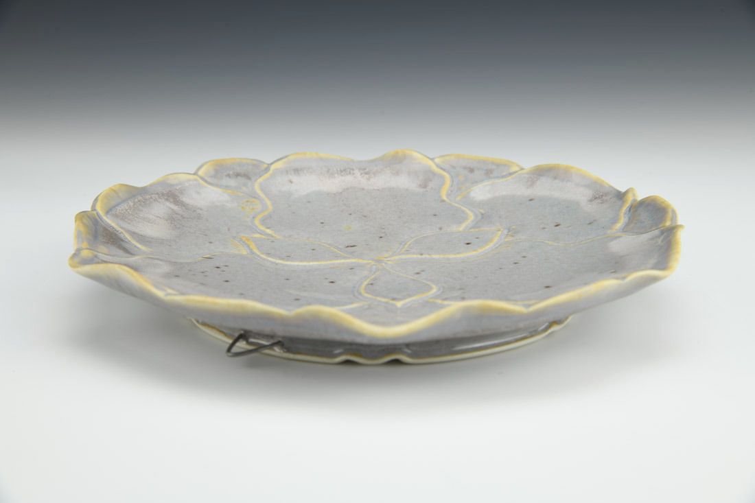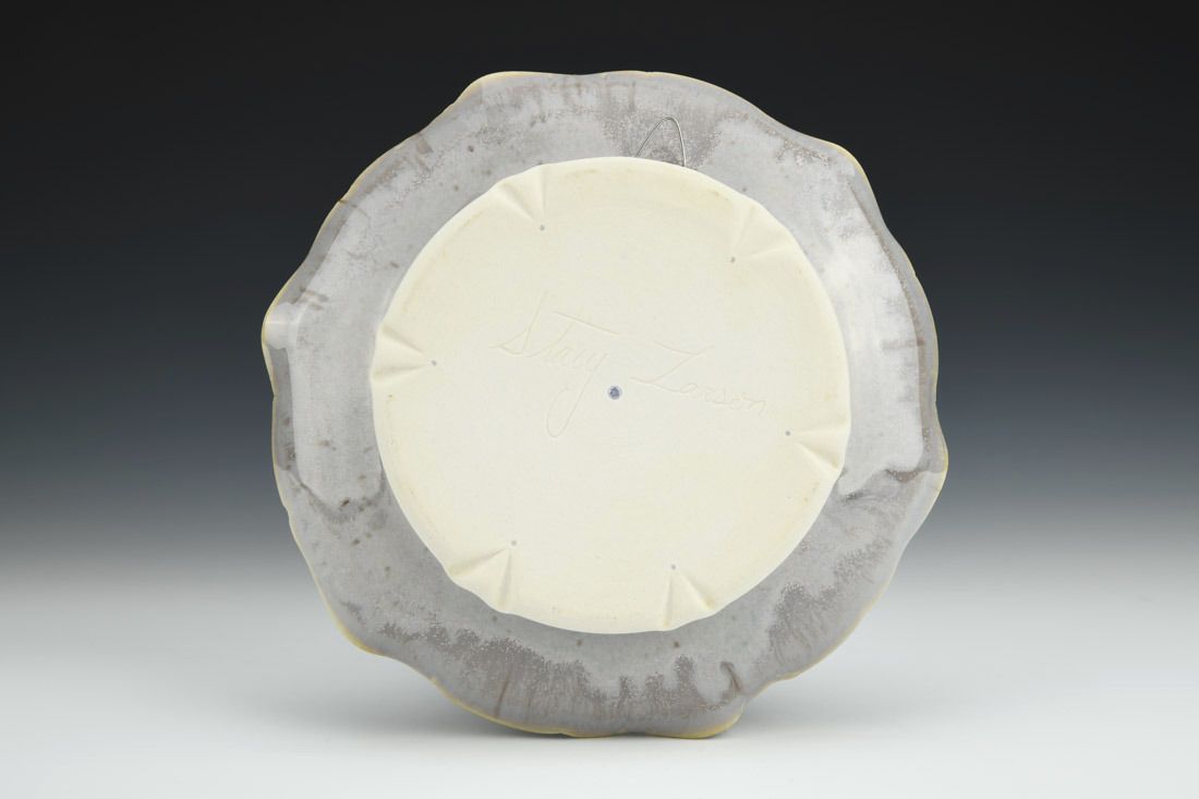 aPorcelain with cubic zircon and nichrome wire, wheel thrown and altered, carved, cone 6 electric fired, 1.25 x 8.25 x 8 inches.