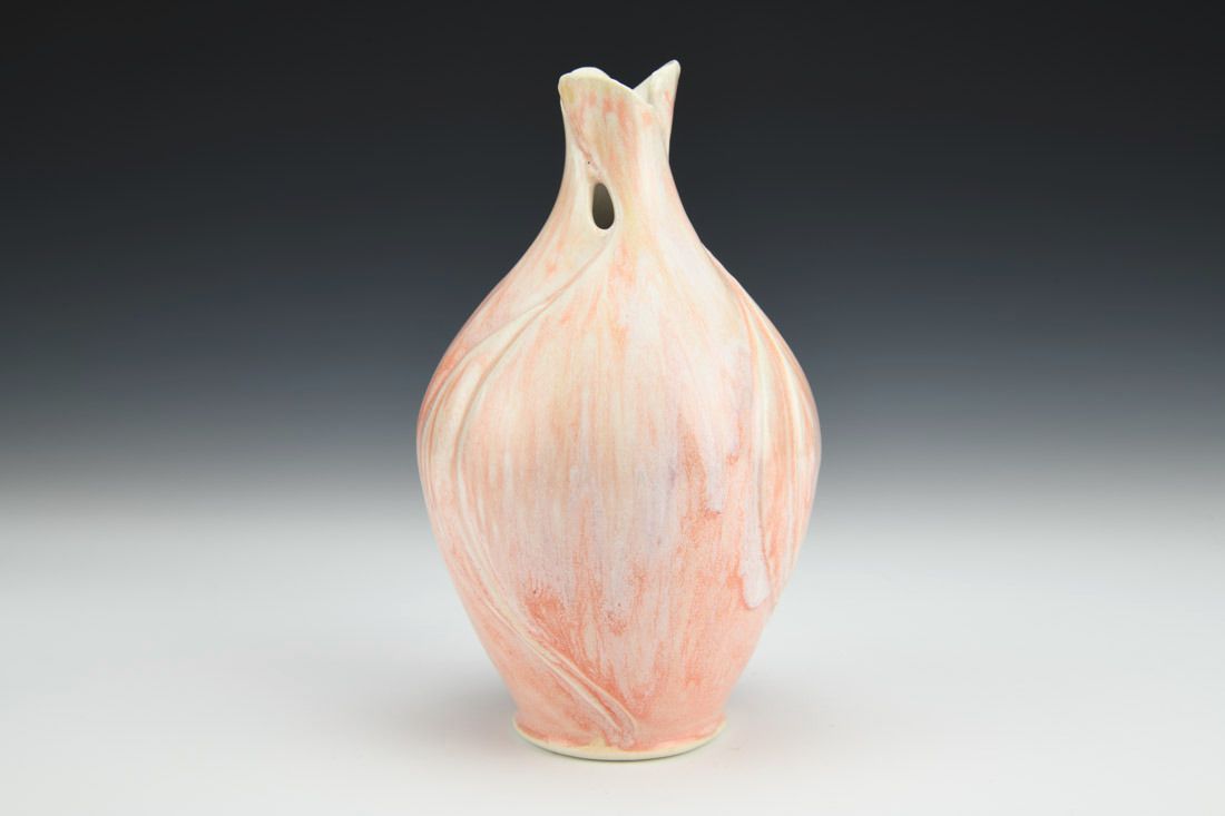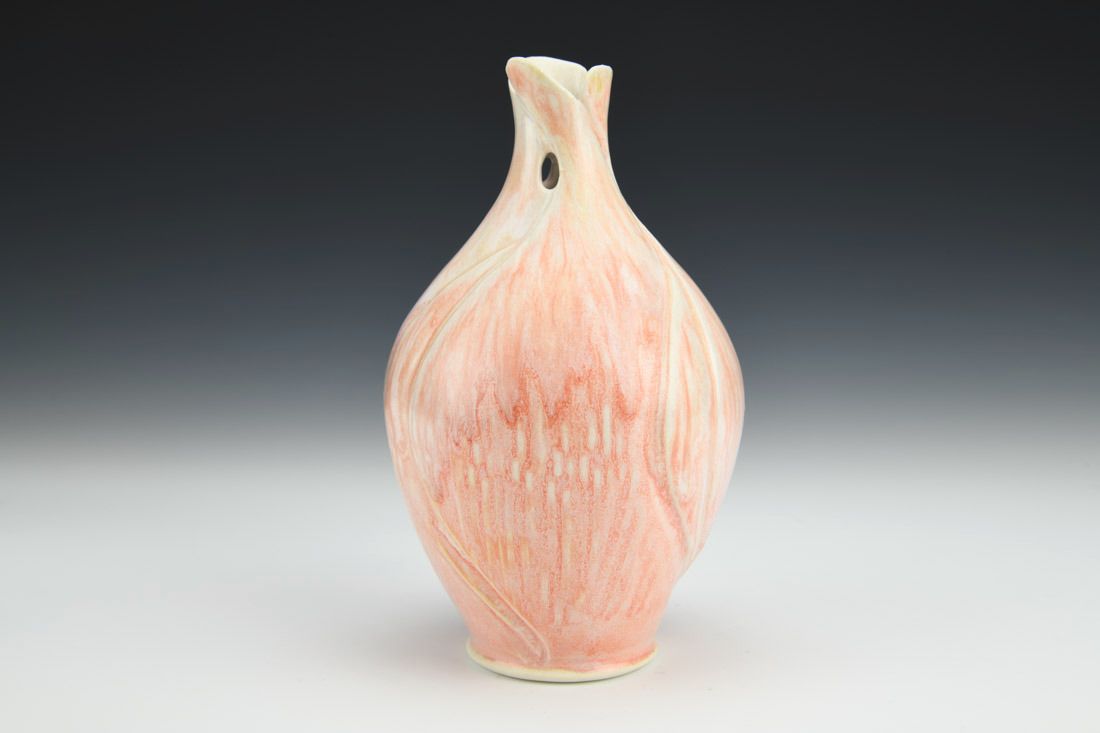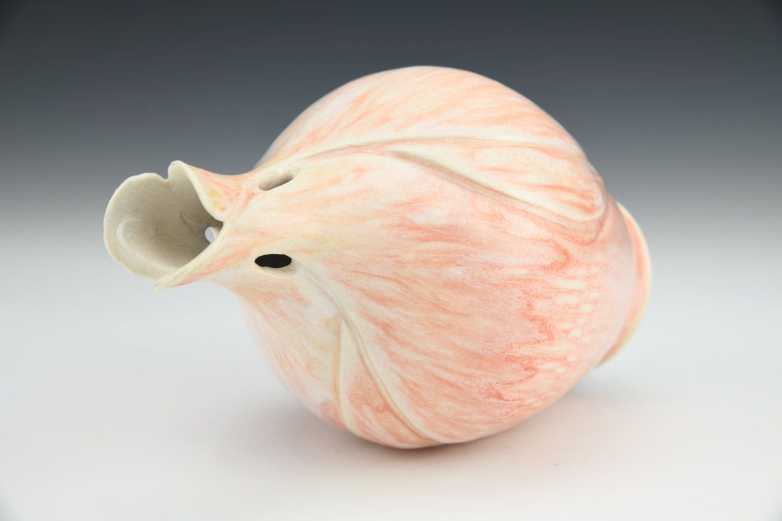 Porcelain with cubic zirconia, wheel thrown and altered, carved, cone 6 electric fired, 6.75 x 4 x 4 inches.