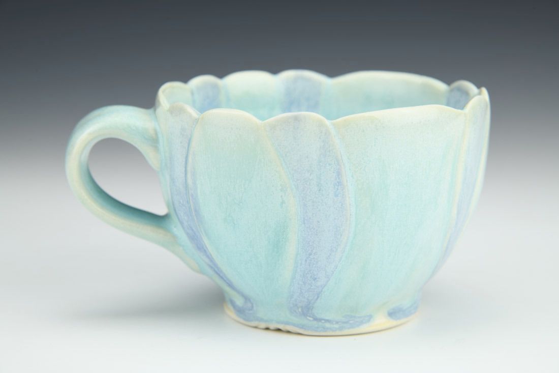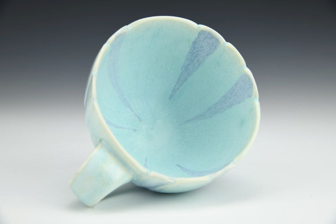 Porcelain with cubic zirconia, wheel thrown and altered, carved, cone 6 electric fired, 3 x 5 x 4 inches.