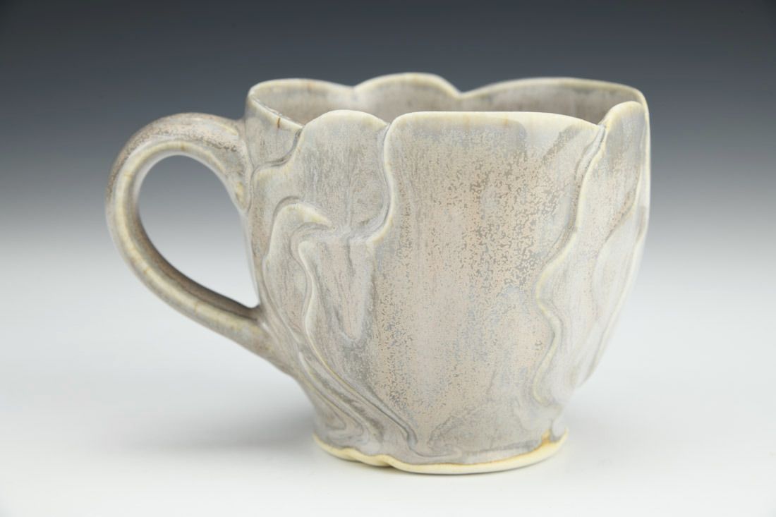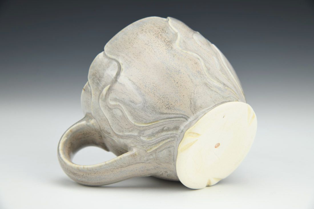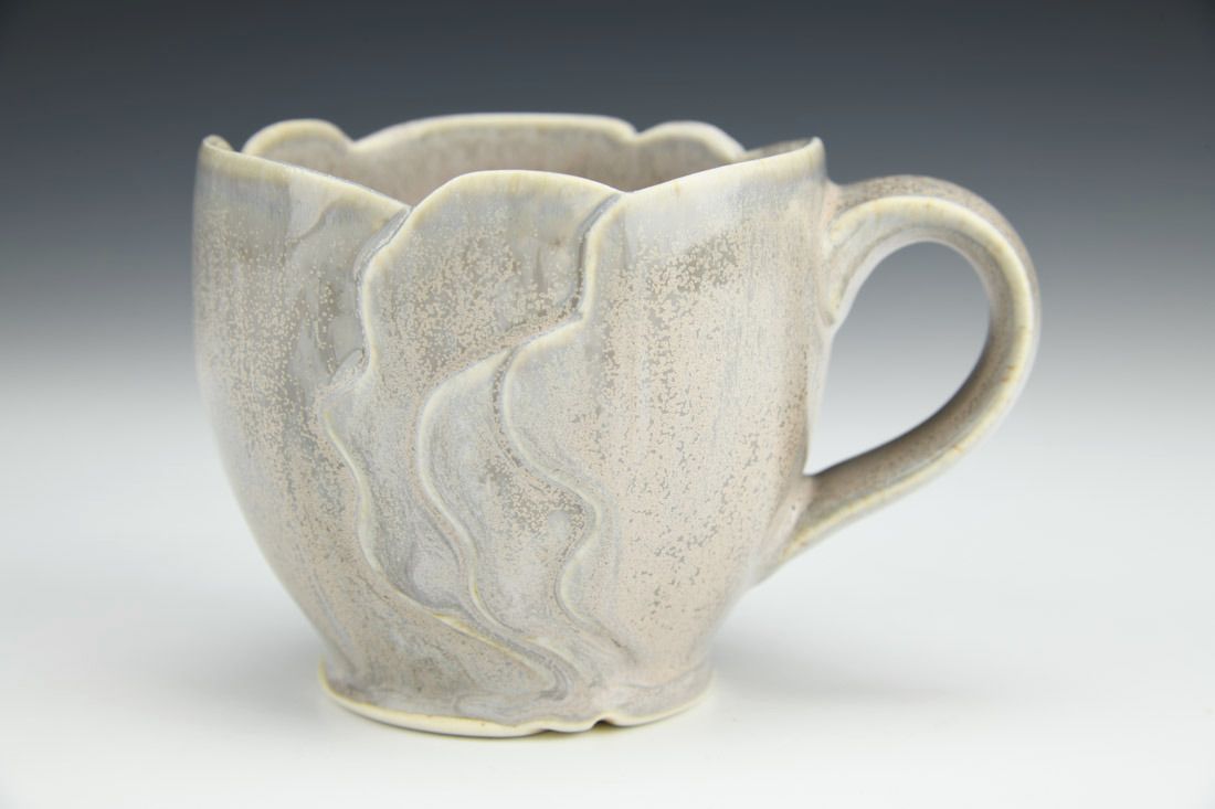 Porcelain with cubic zirconia, wheel thrown and altered, carved, cone 6 electric fired, 3.25 x 5 x 3.75 inches.