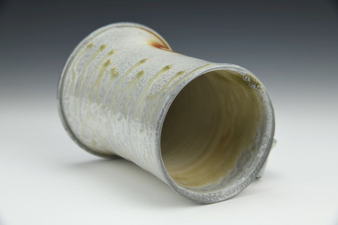 Porcelaneous stoneware, wheel thrown, cone 12 woodfired, 5.25 x 5 x 3.5 inches.