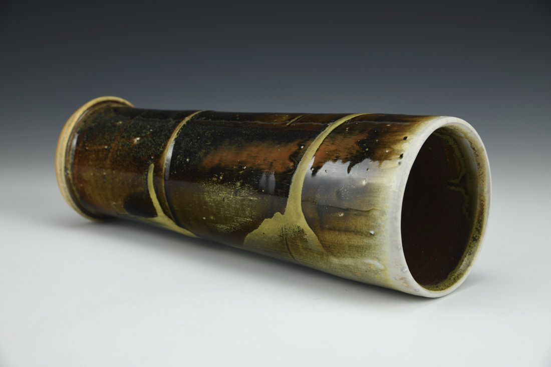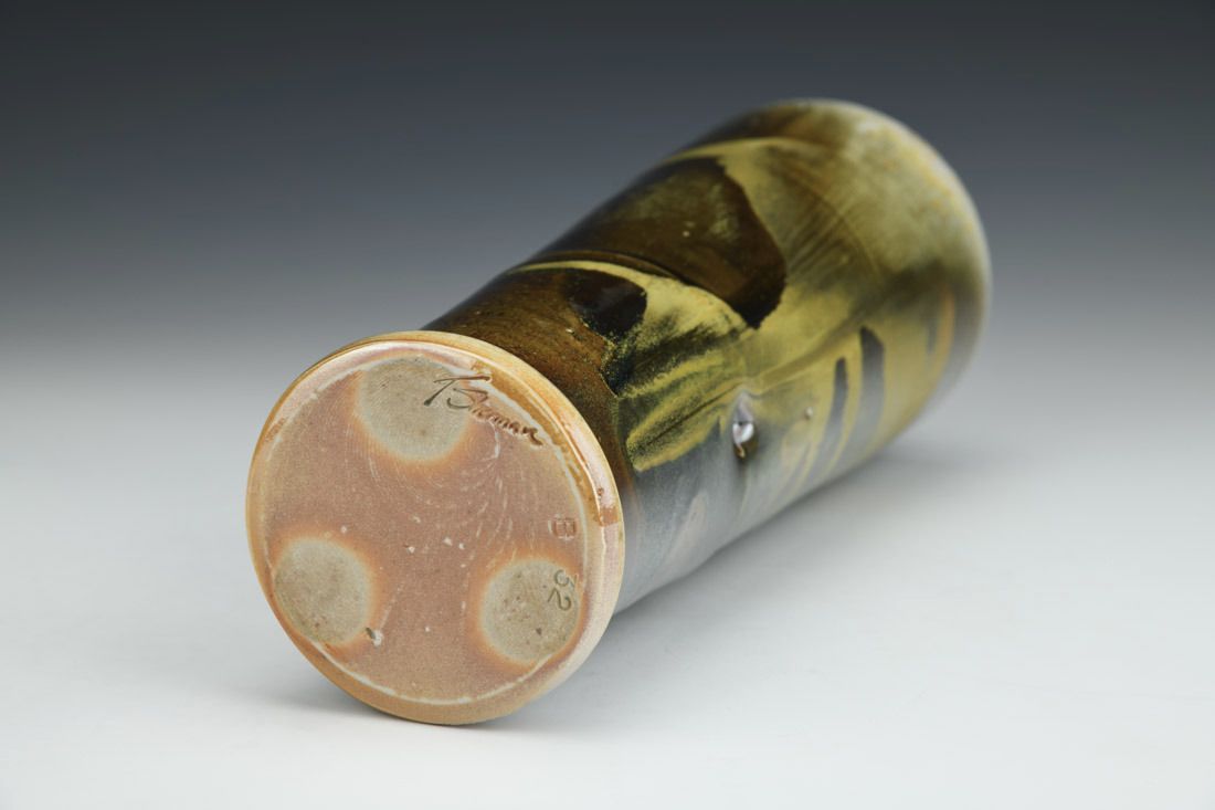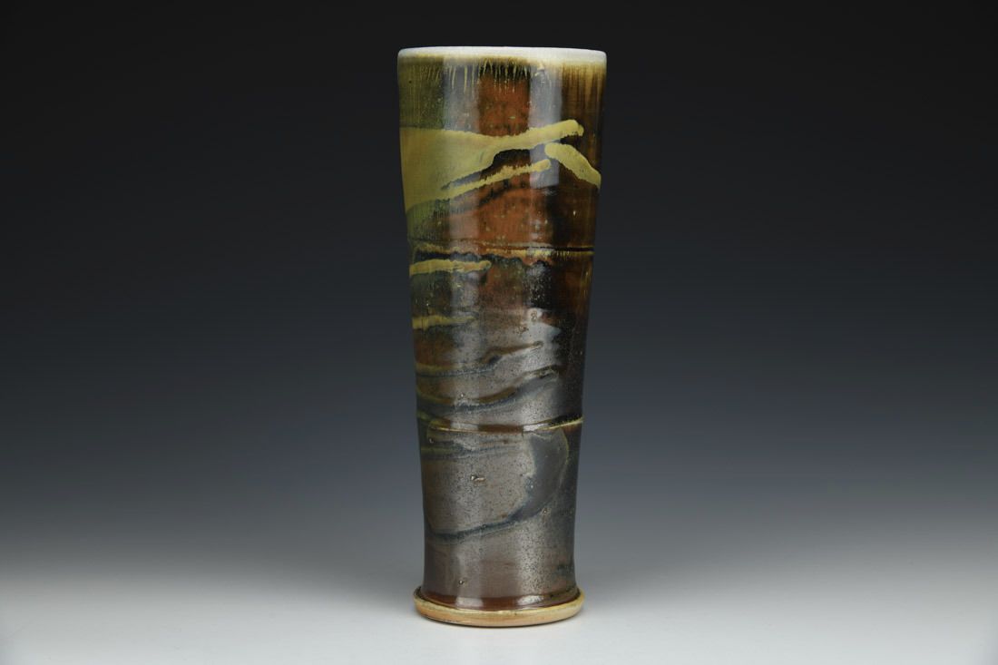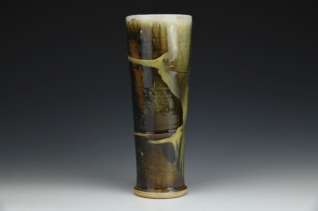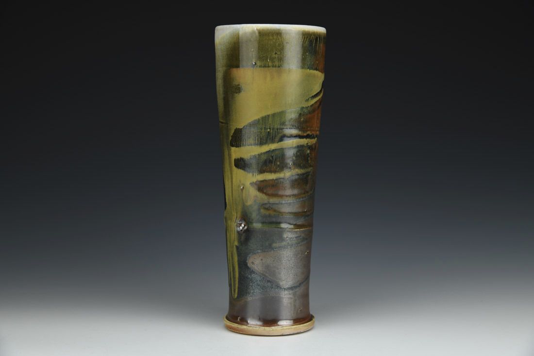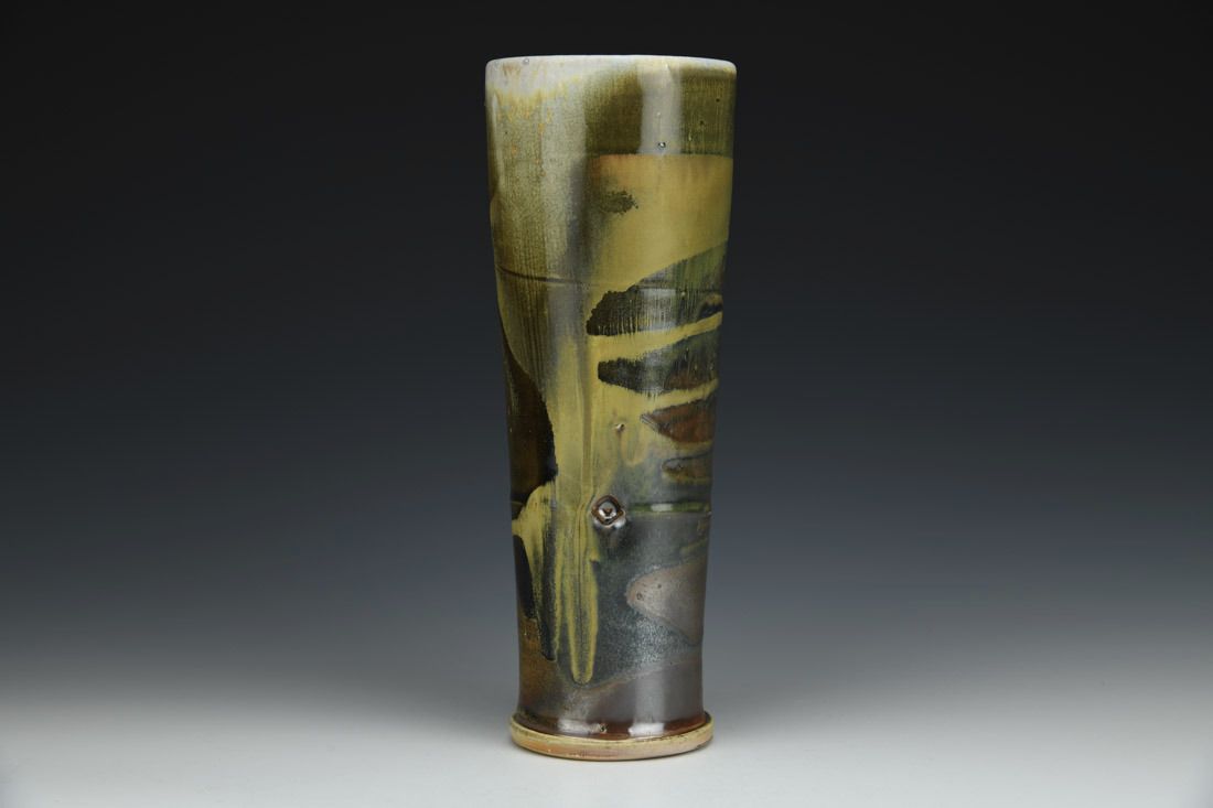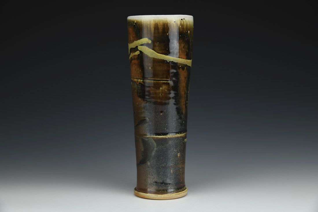 Stoneware, wheel thrown, glaze, cone 11 woodfired, 10.25 x 4 x 4 inches.
