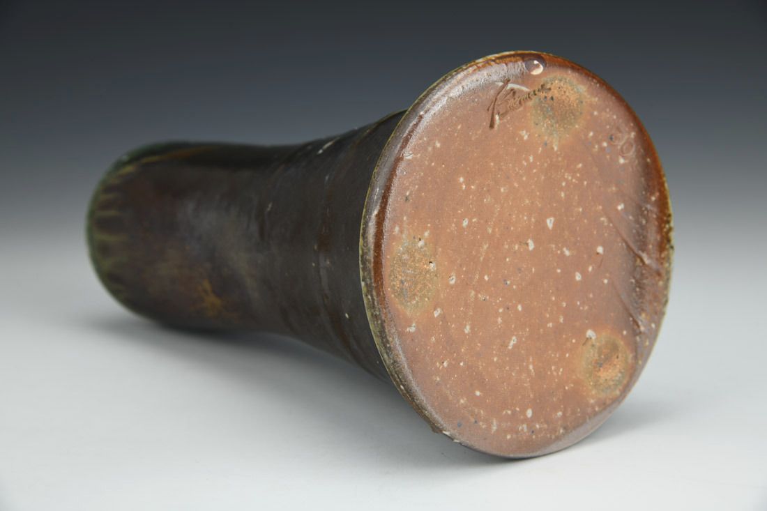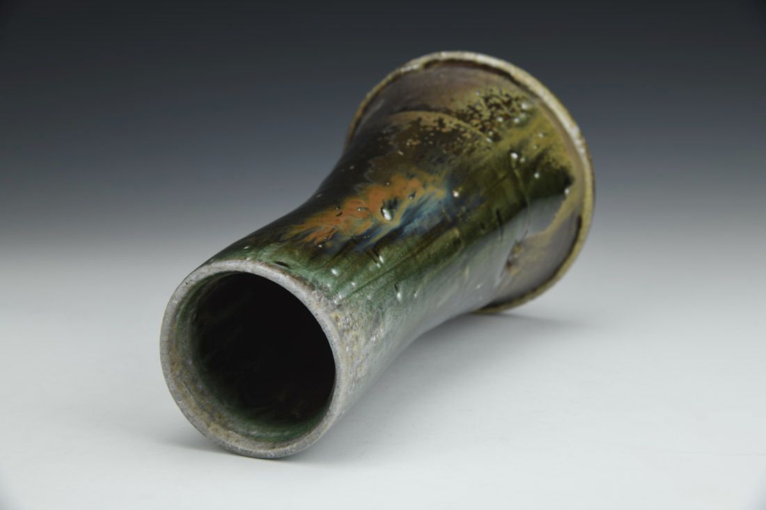 Stoneware, wheel thrown, glaze, cone 11 woodfired, 8.25 x 4.75 x 4.75 inches