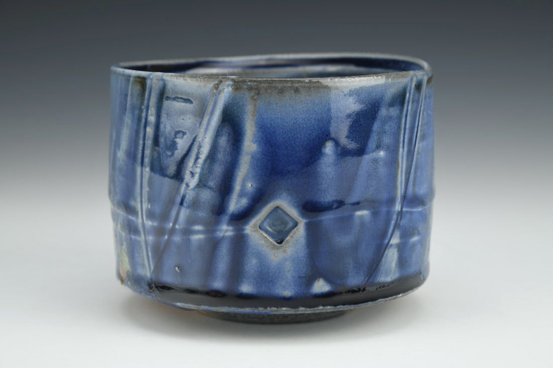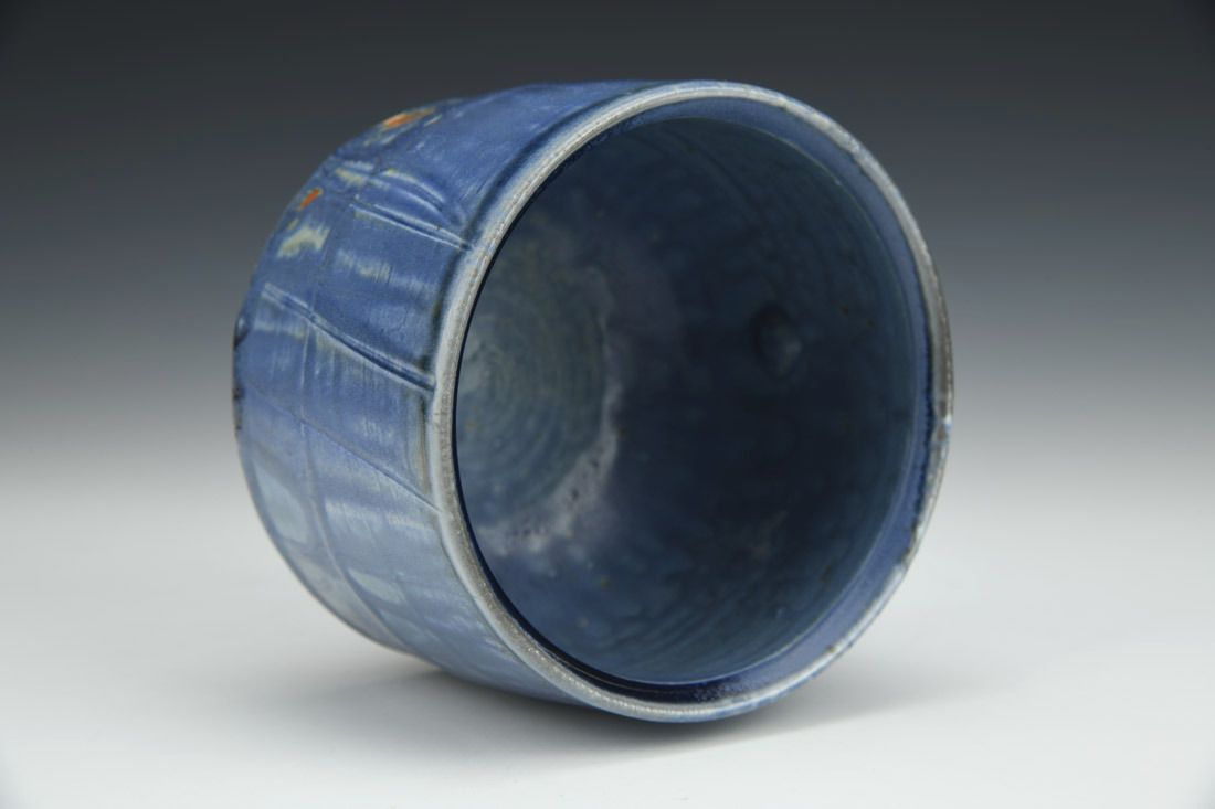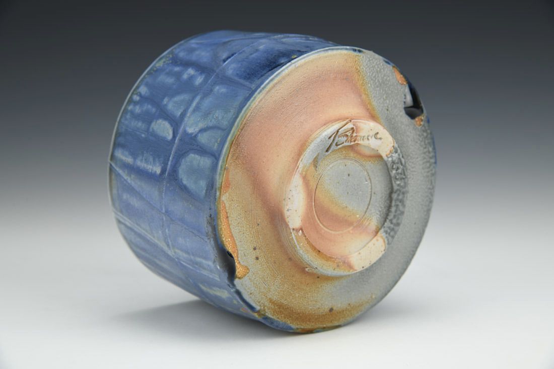 Stoneware, wheel thrown, slip, cone 11 woodfired, 3.25 x 4.25 x 4.25 inches.
