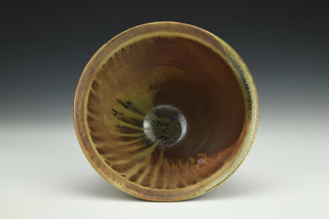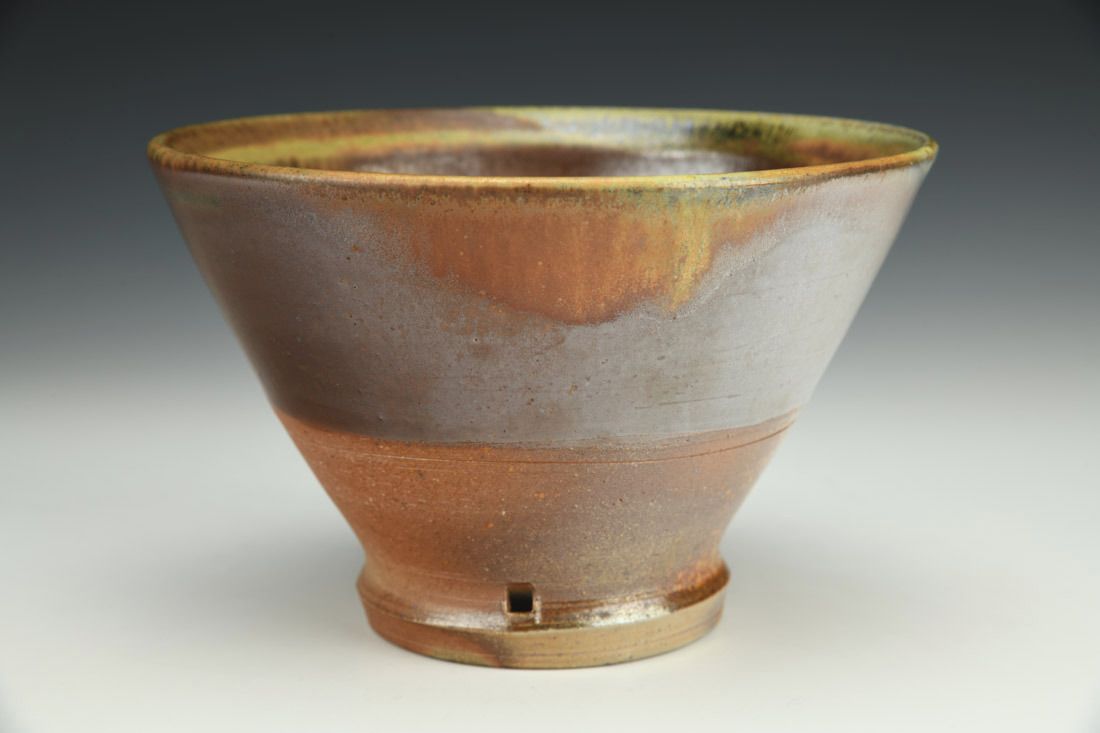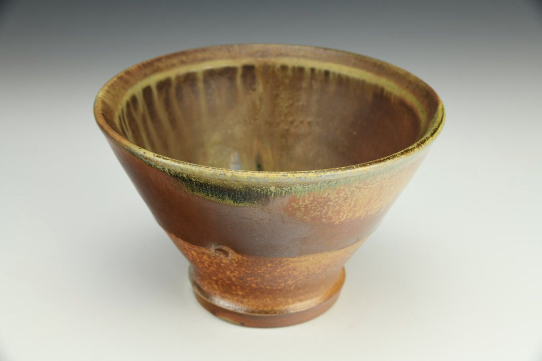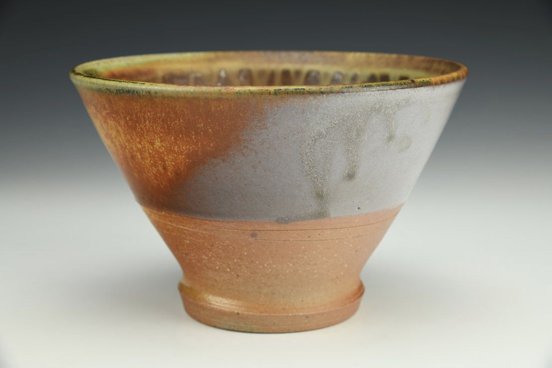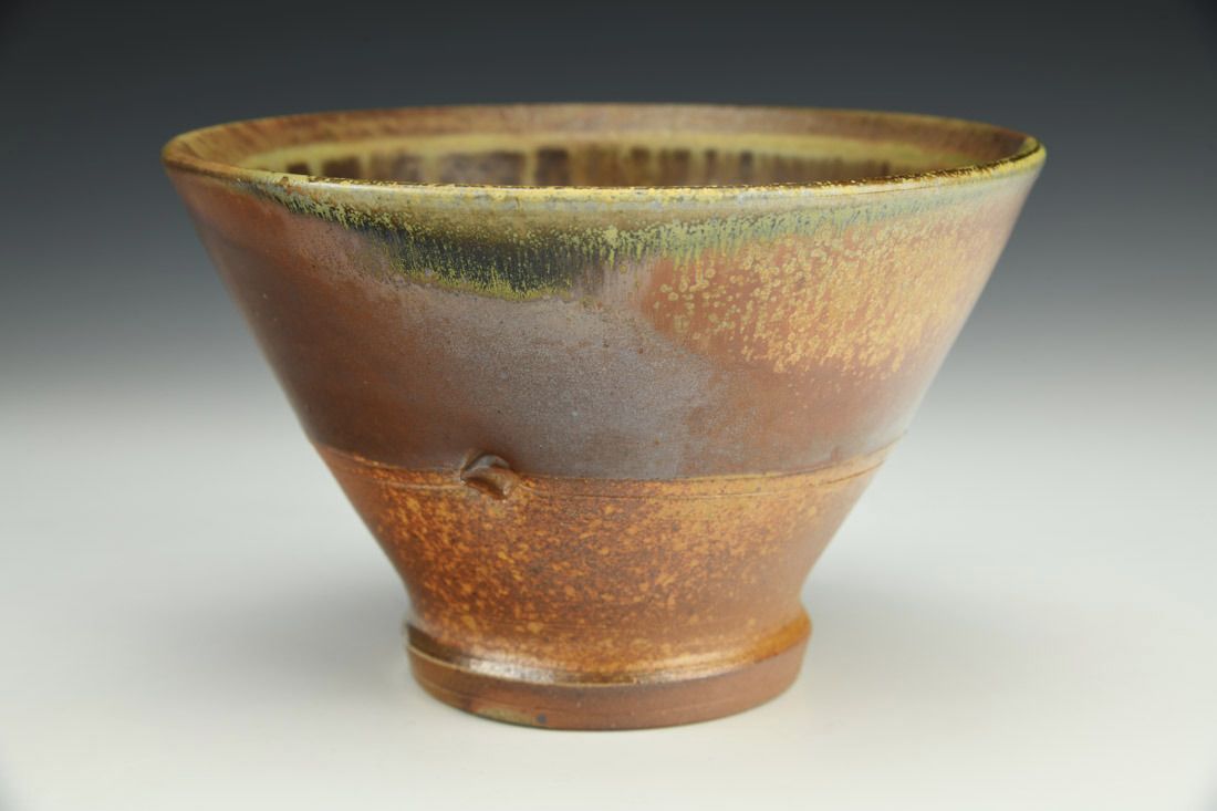 Stoneware, wheel thrown, glaze, cone 11 woodfired, 4 x 6.5 x 6.5 inches.