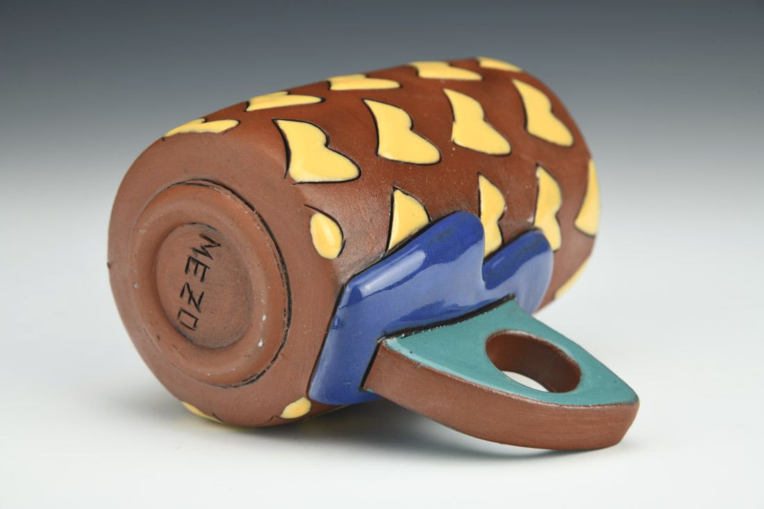 Earthenware, wheel thrown and hand built with slabs, terra sigillata, glaze, cone 2 electric fired, 4.5 x 4.75 x 3 inches.