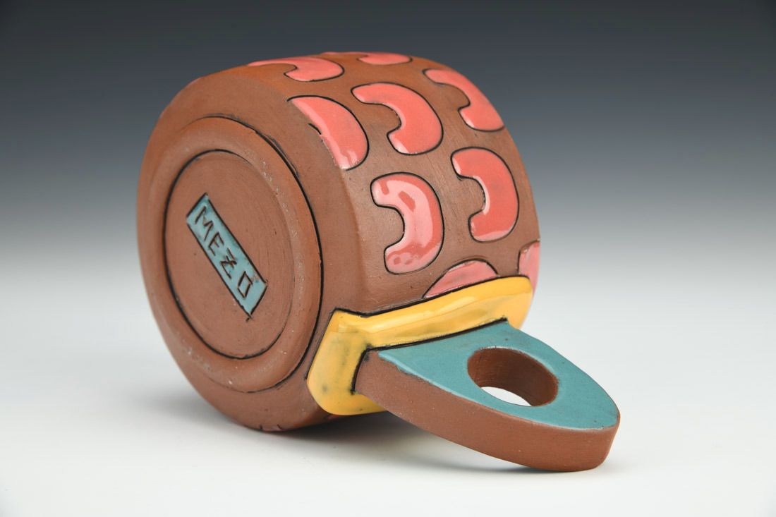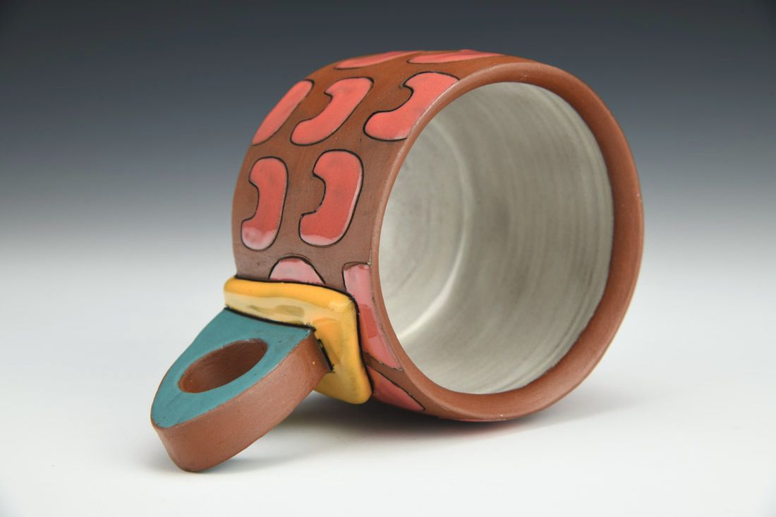 Earthenware, wheel thrown and hand built with slabs, terra sigillata, glaze, cone 2 electric fired, 2.75 x 5.5 x 3.75 inches.