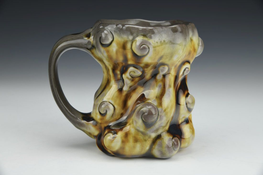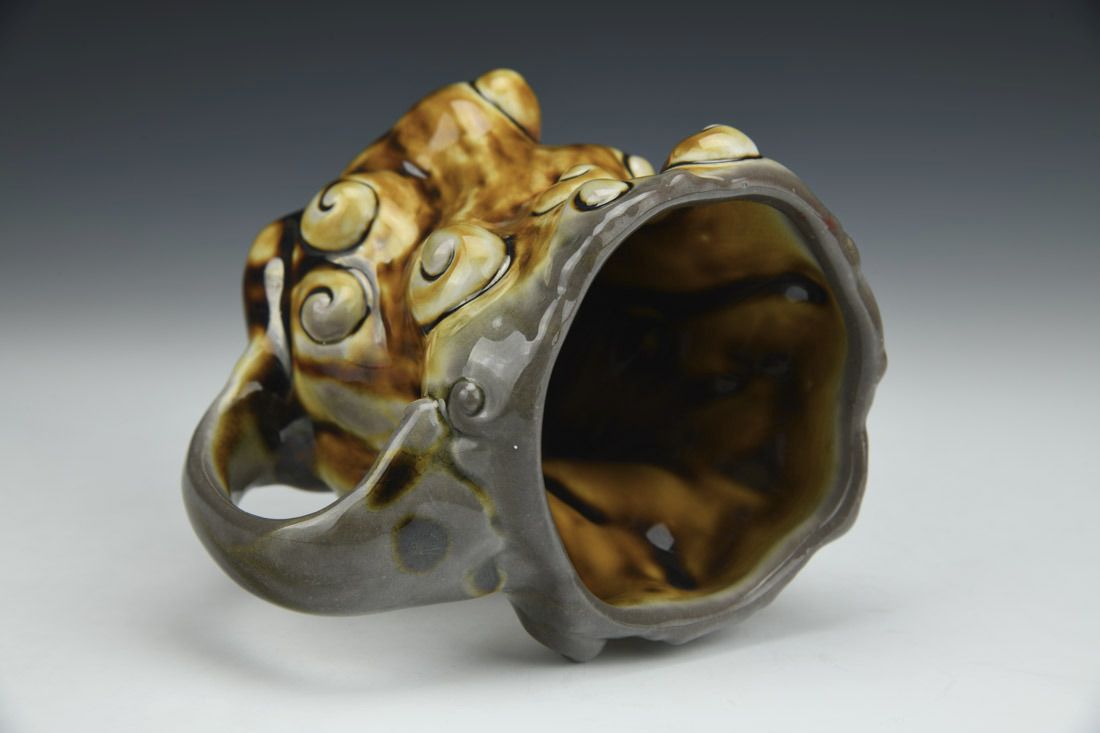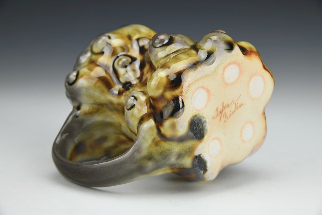 Porcelain, slipcast, soda fired, 4.5 x 5.5 x 4.25 inches.