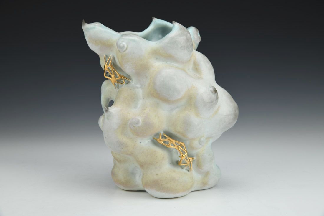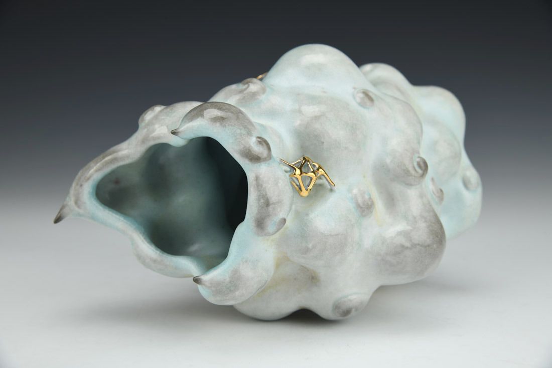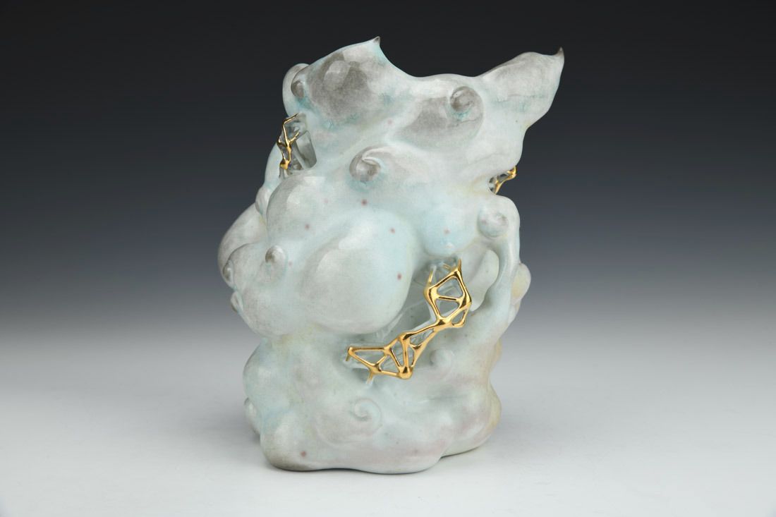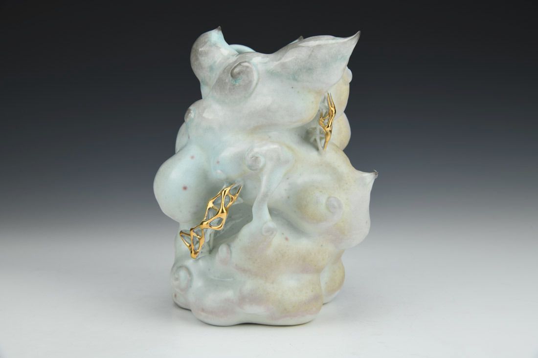 Porcelain, slipcast, soda fired, 6.5 x 5.5 x 5 inches.