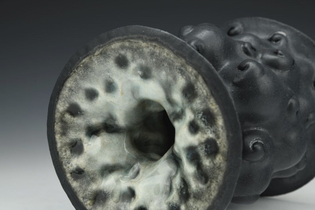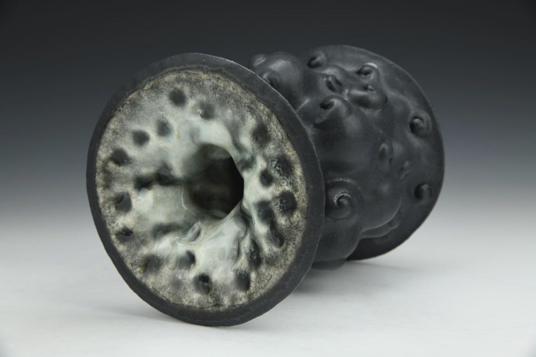 Stoneware, hand built, glaze, cone 6 electric fired, 7.25 x 5.75 x 5.75 inches.