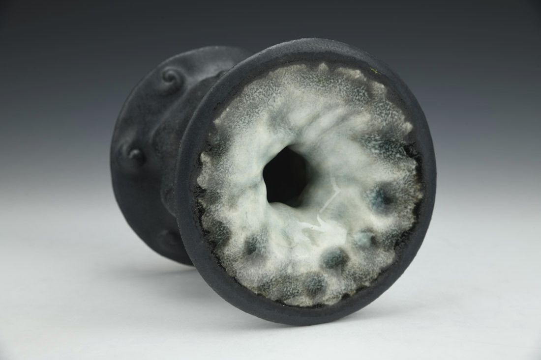 Stoneware, hand built, glaze, cone 6 electric fired, 4.75 x 5 x 5 inches.
