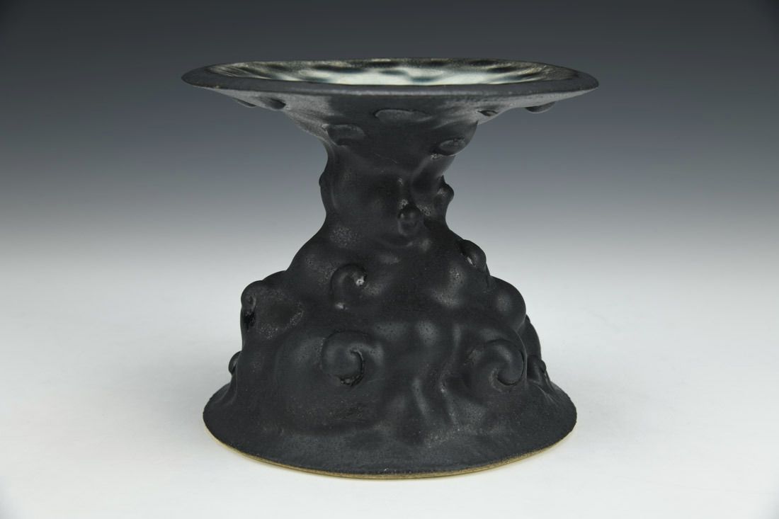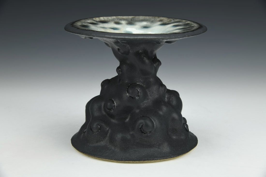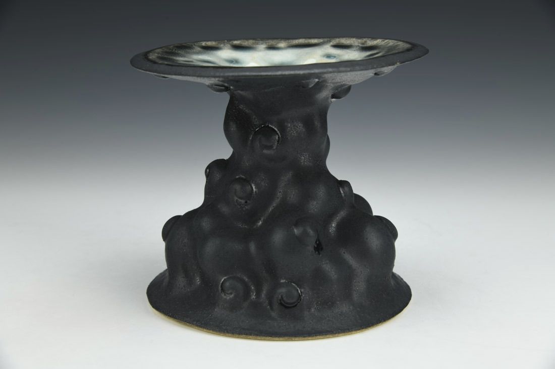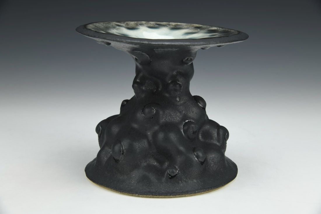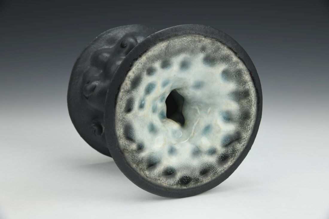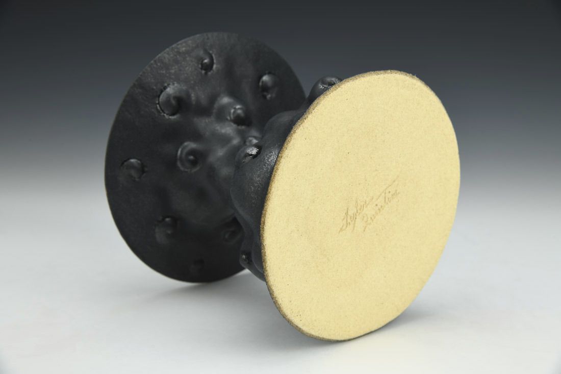 Stoneware, hand built, glaze, cone 6 electric fired, 5 x 5.5 x 5.5 inches.