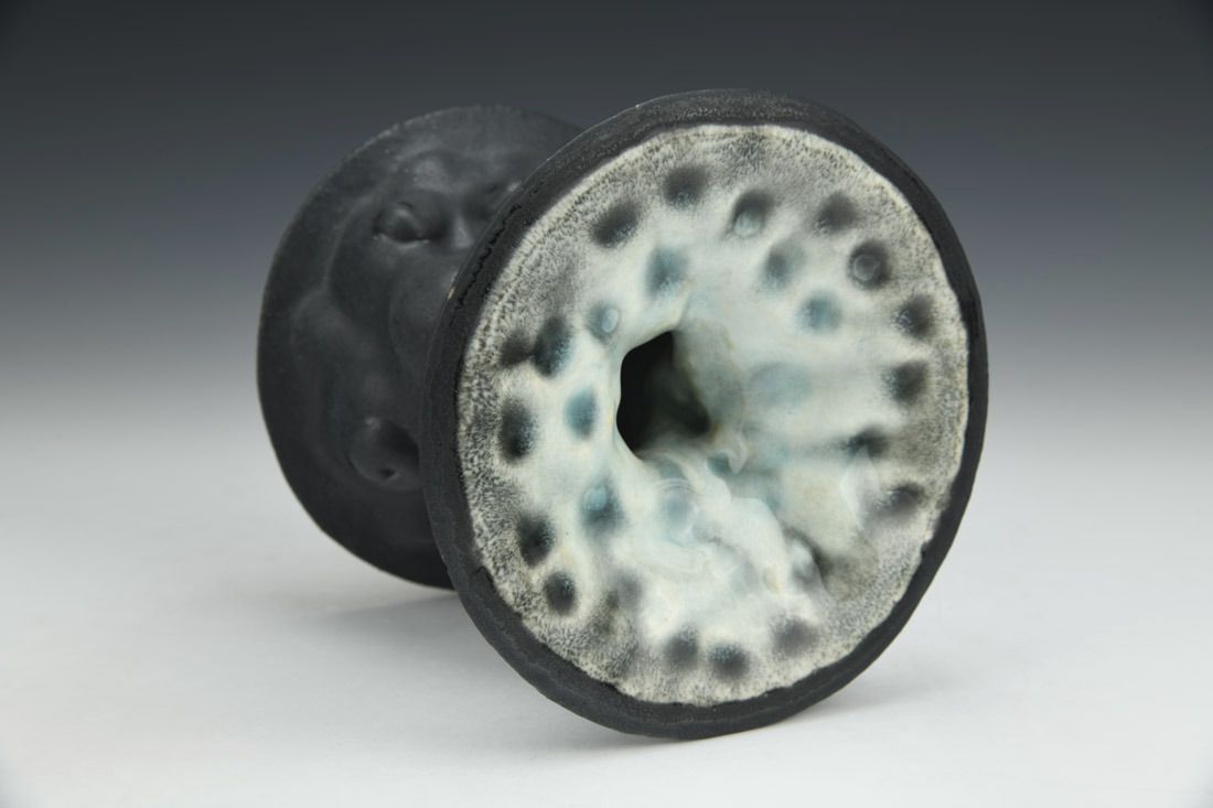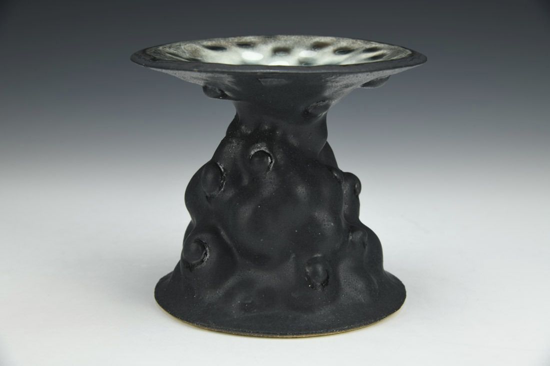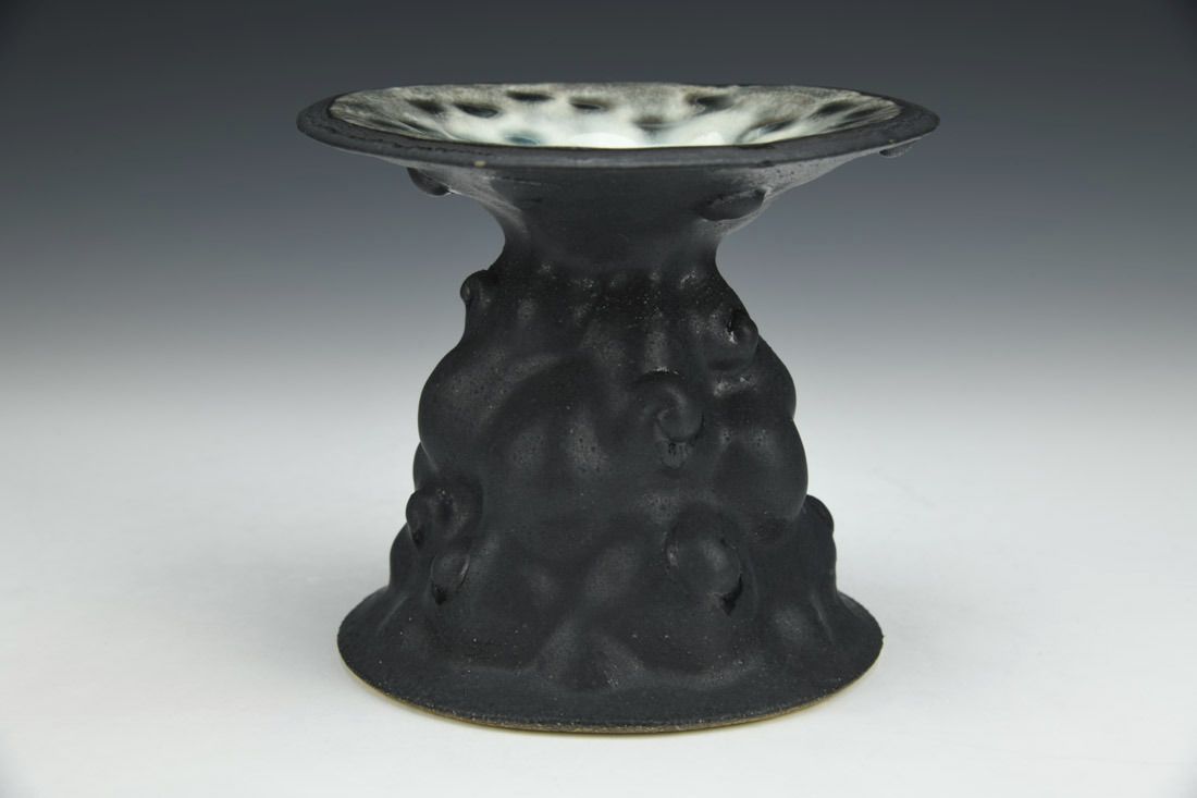Stoneware, hand built, glaze, cone 6 electric fired, 4.75 x 5.25 x 5.25 inches.