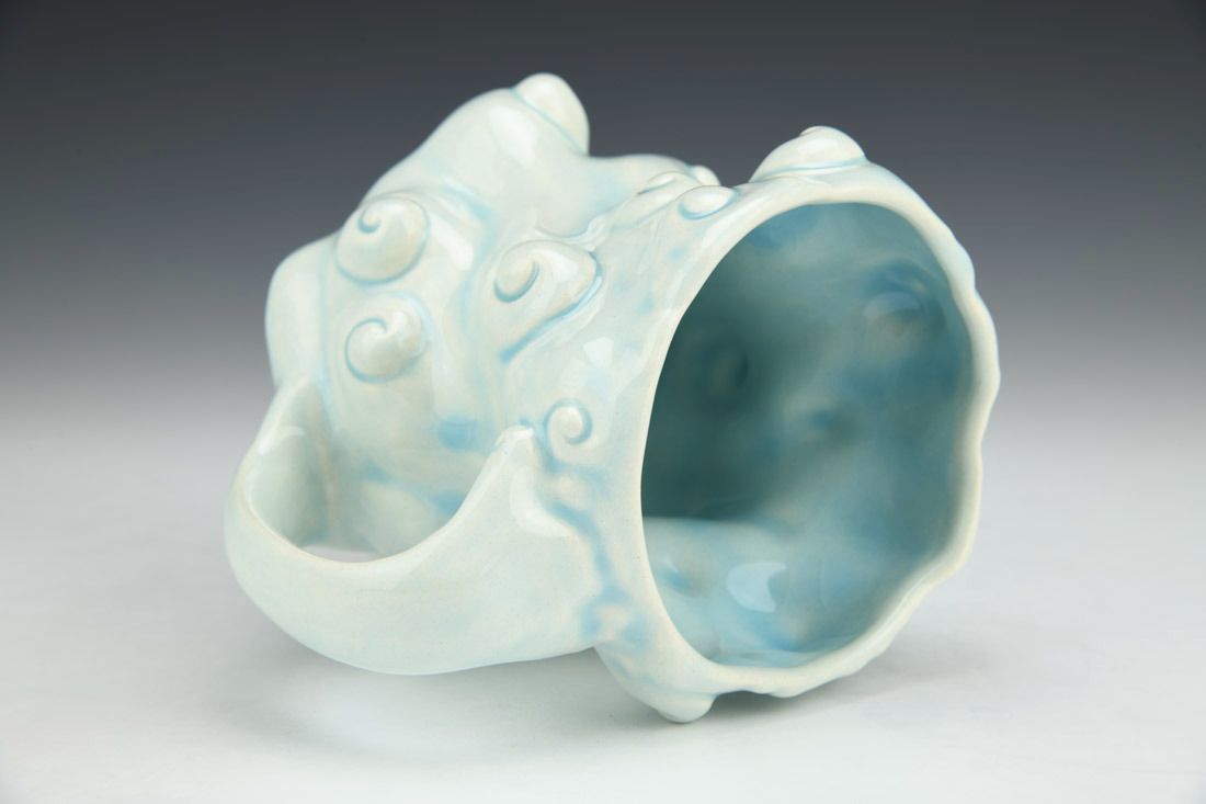 Porcelain, slipcast, glaze, cone 6 electric fired, 4.75 x 6 x 4.25 inches.