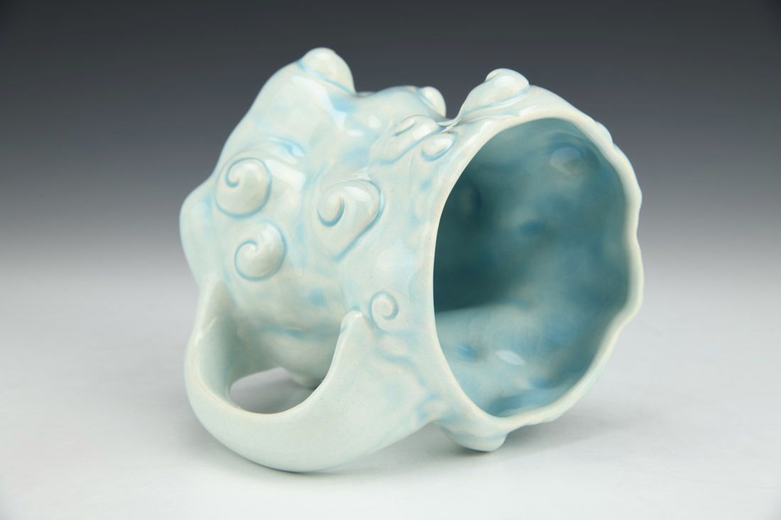 Porcelain, slipcast, glaze, cone 6 electric fired, 4.75 x 6 x 4.25 inches.