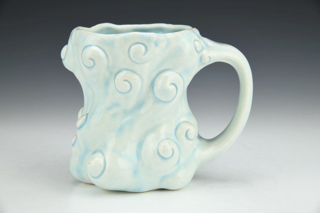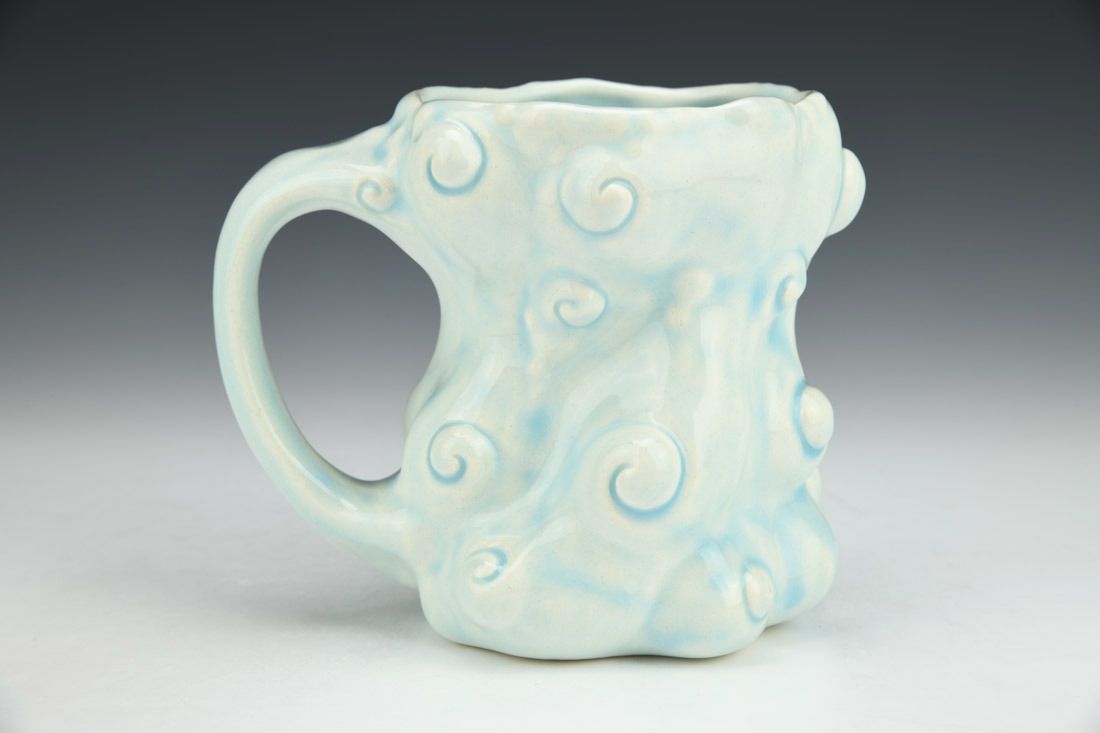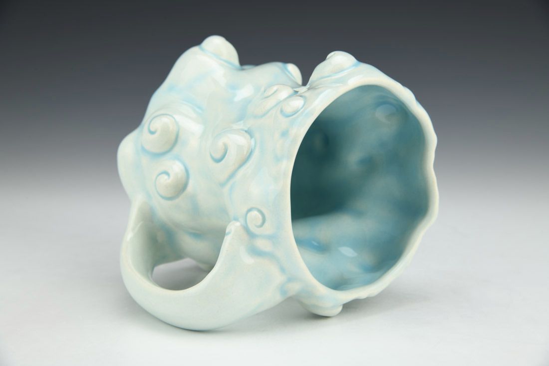Porcelain, slipcast, glaze, cone 6 electric fired, 4.75 x 6 x 4.25 inches.