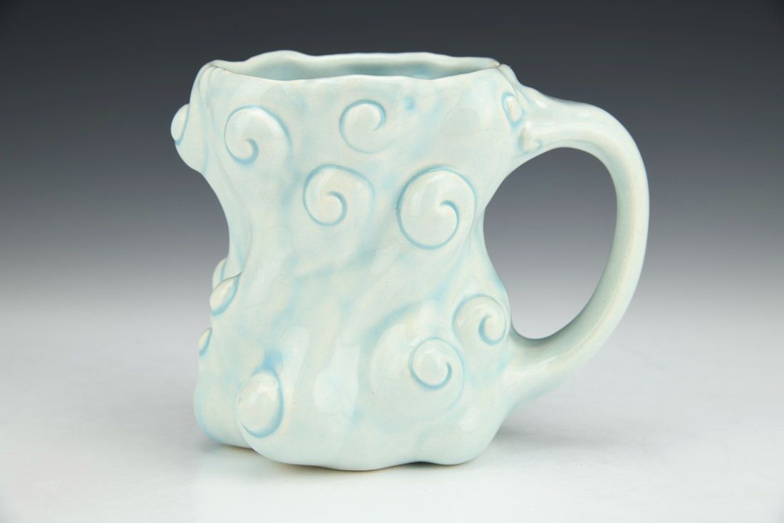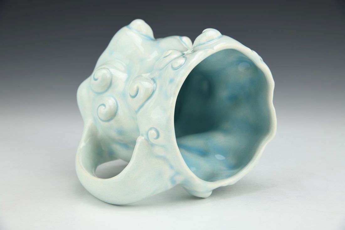 Porcelain, slipcast, glaze, cone 6 electric fired, 4.75 x 6 x 4.25 inches.